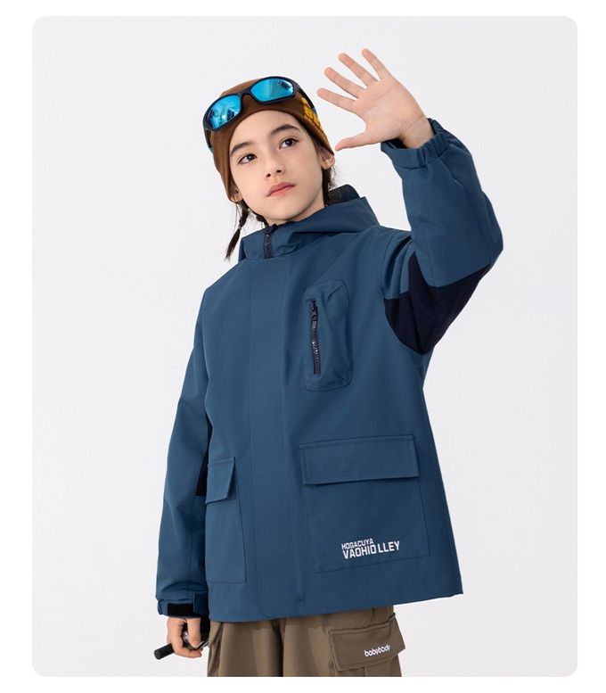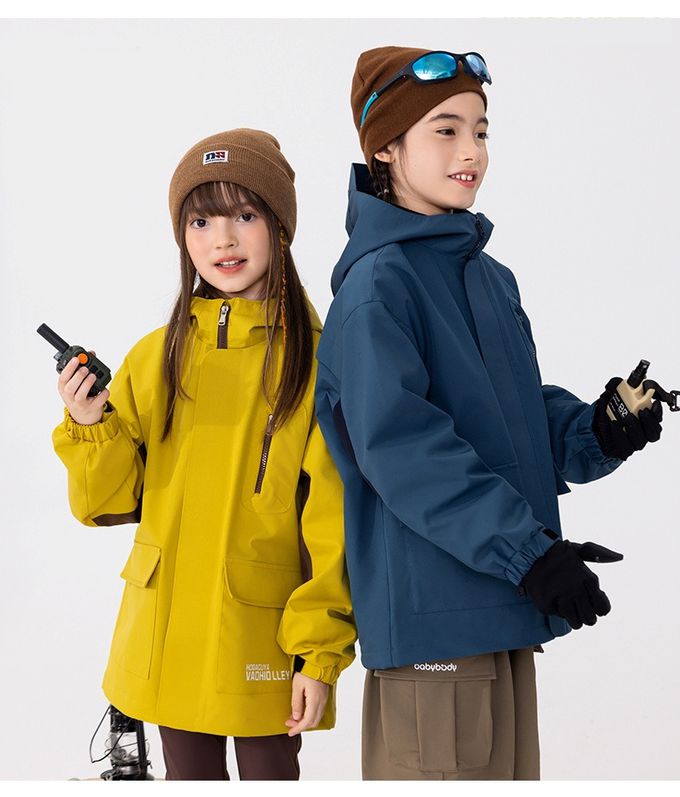 babybody - 防風防水高領連帽款衝鋒外套-拼色灰