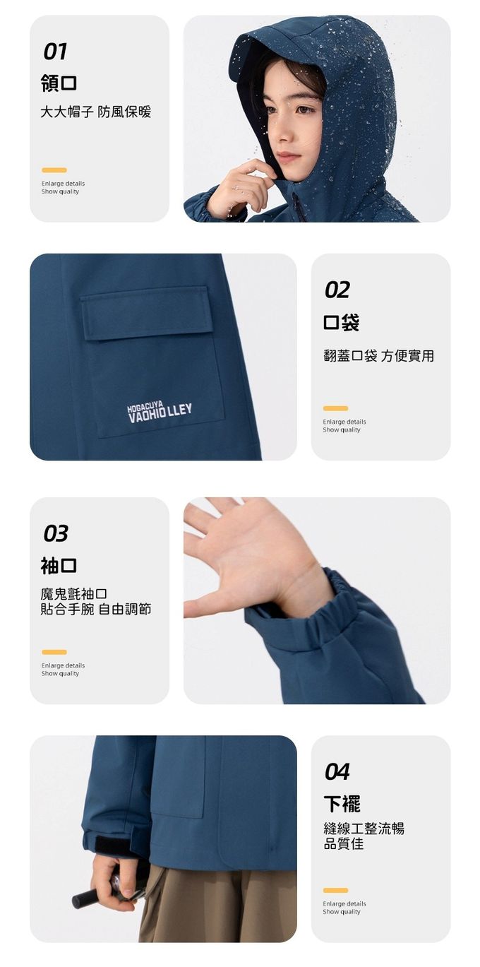 品名:防風防水高領連帽款衝鋒外套