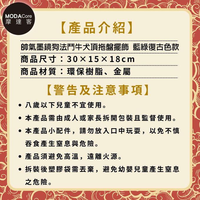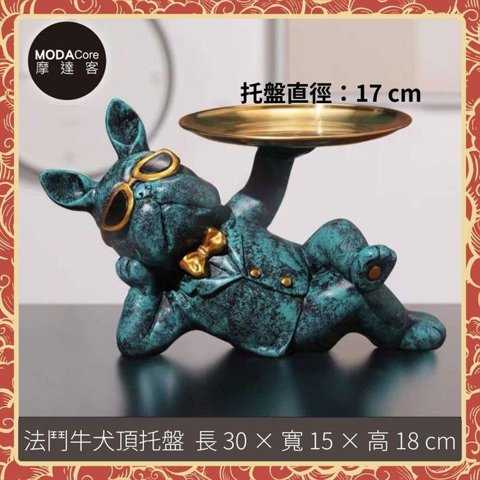 品名:◉開運招財◉帥氣墨鏡狗法鬥牛犬頂托盤擺飾-藍綠復古色款-聚寶盆糖果收納 時尚藝術 事業開店禮品