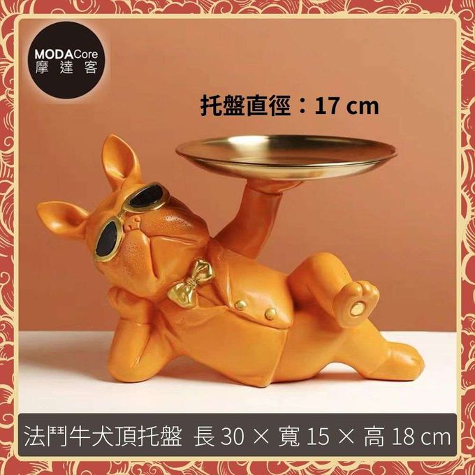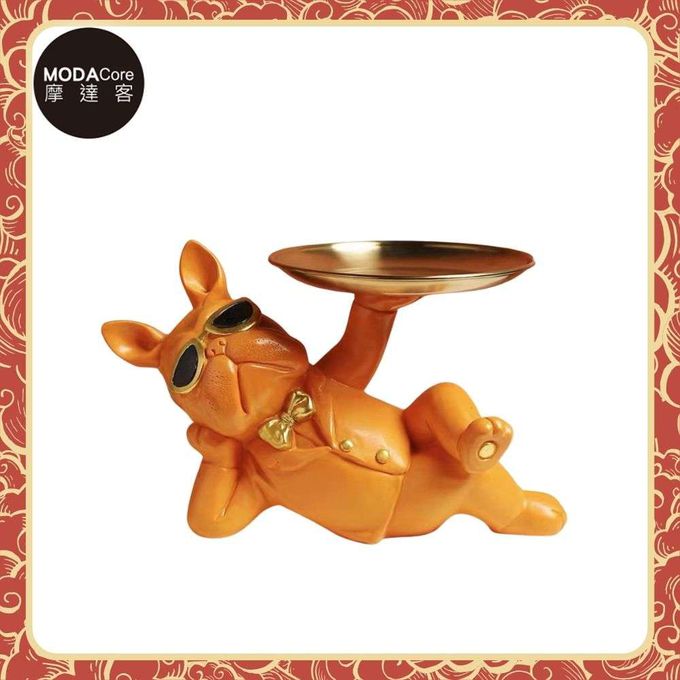 品名:◉開運招財◉帥氣墨鏡狗法鬥牛犬頂托盤擺飾-橙橘色款-聚寶盆糖果收納 時尚藝術 事業開店禮品