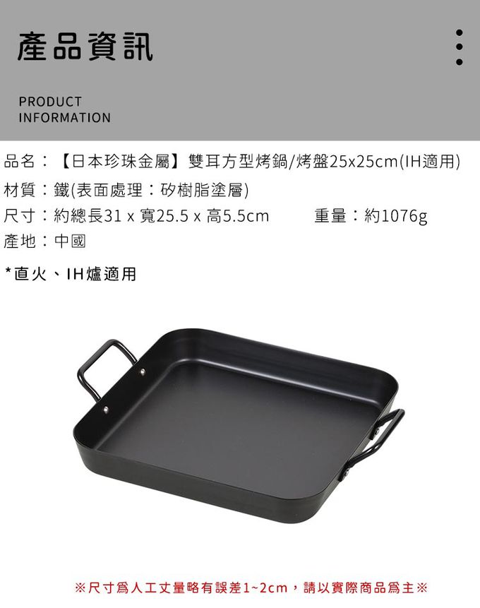 品名:雙耳方型烤鍋/烤盤25x25cm IH適用