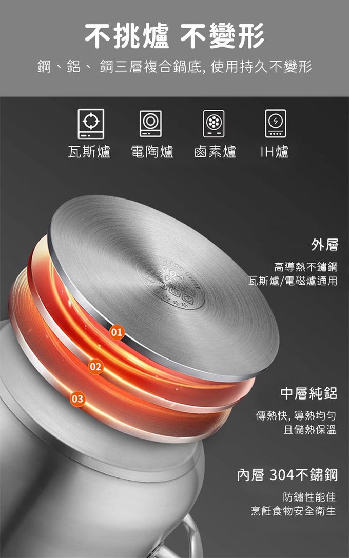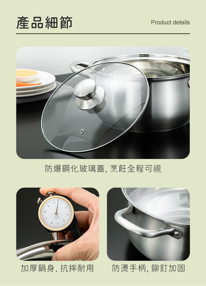 材質:304不鏽鋼、鍋蓋-鋼化玻璃