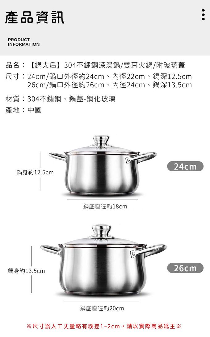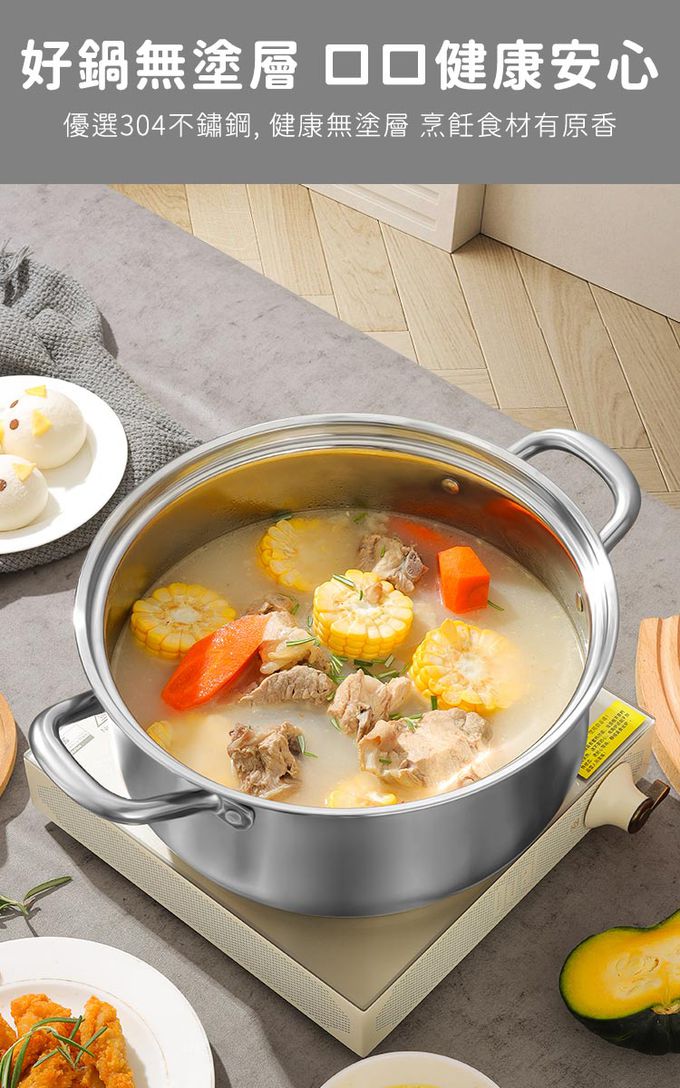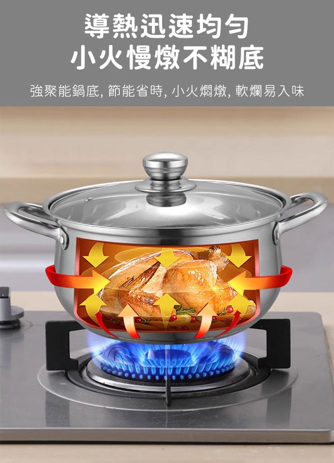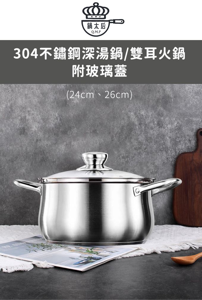 品名:304不鏽鋼深湯鍋/雙耳火鍋/附玻璃蓋26cm