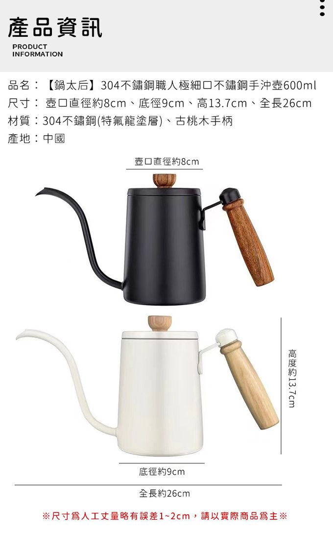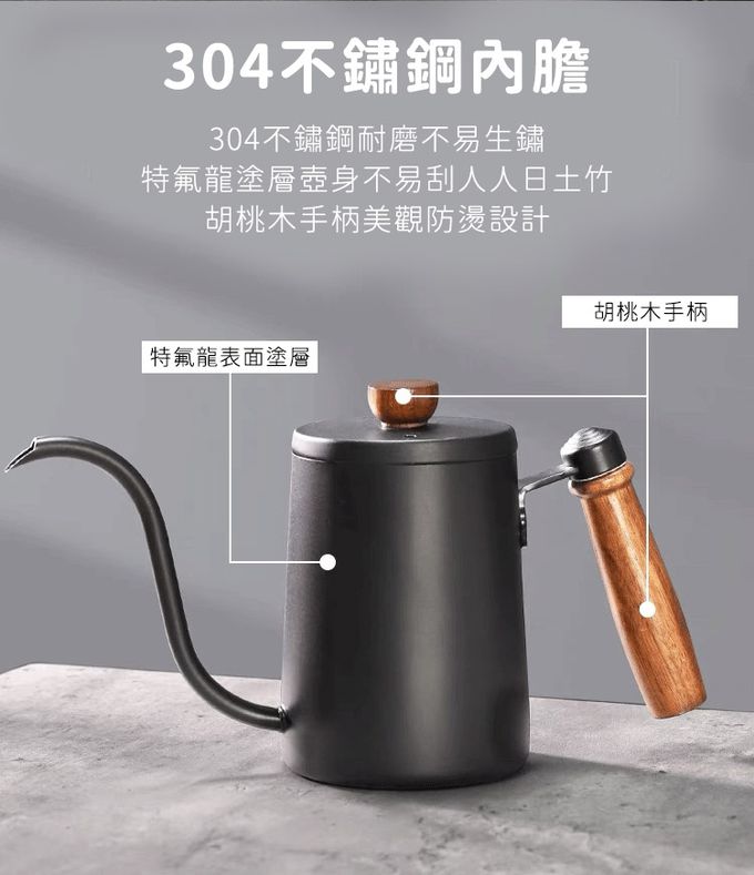 品名:304不鏽鋼職人極細口不鏽鋼手沖壺600ml