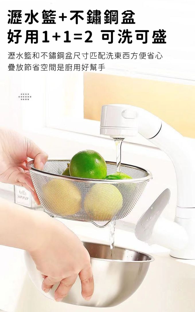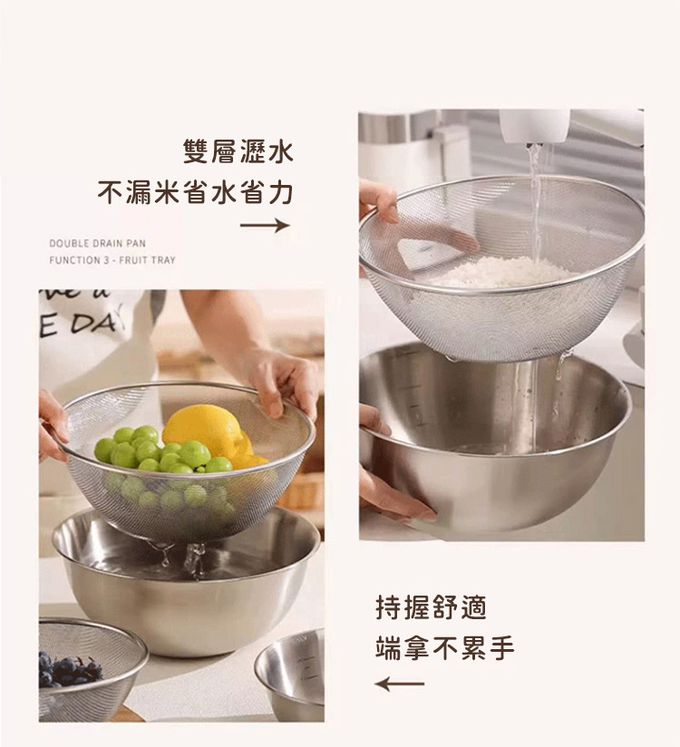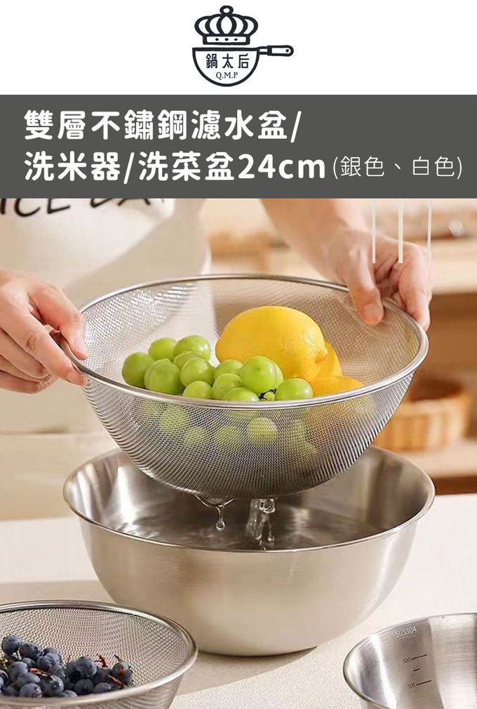 雙層不鏽鋼濾水盆/洗米器/洗菜盆24cm-銀色
