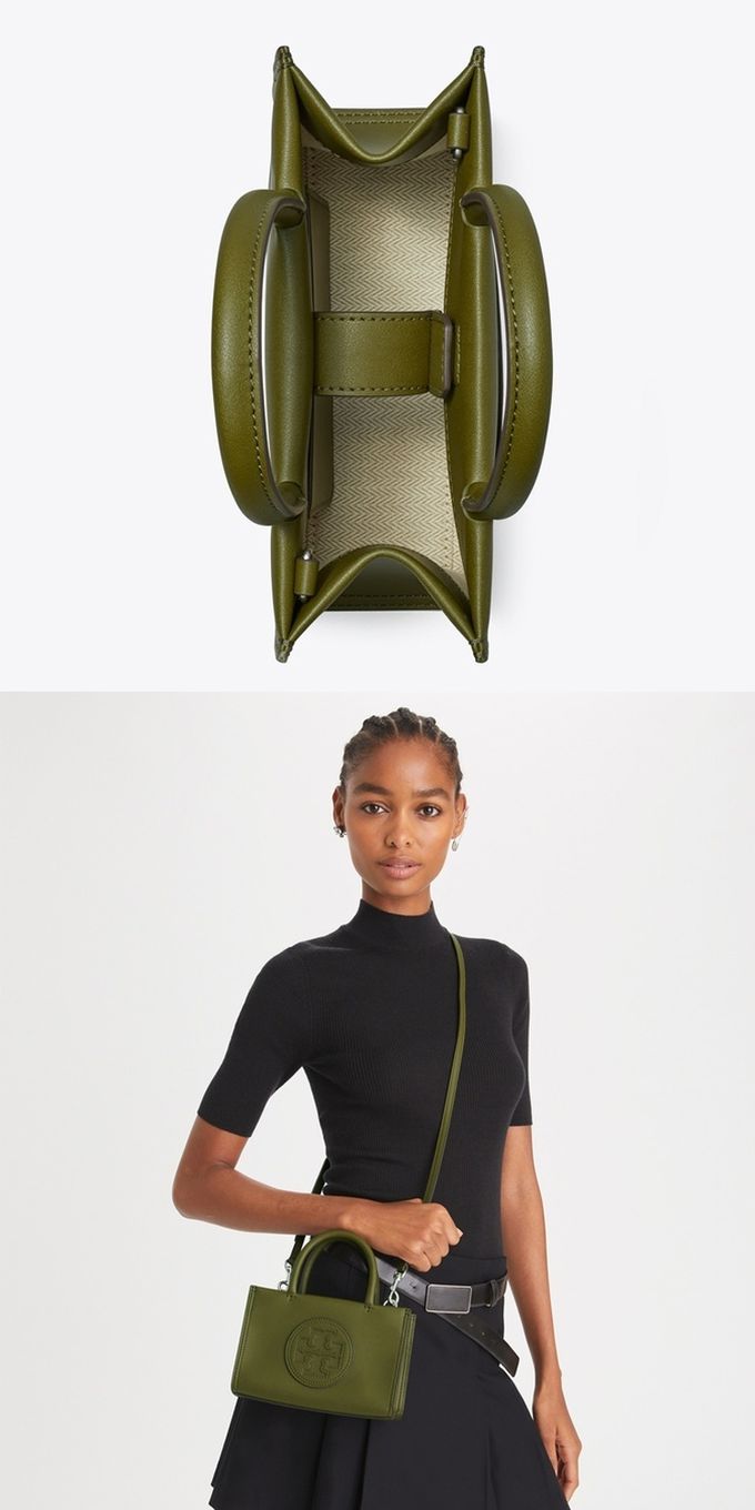 皮革車縫LOGO迷你托特包/兩用包 (軍綠)