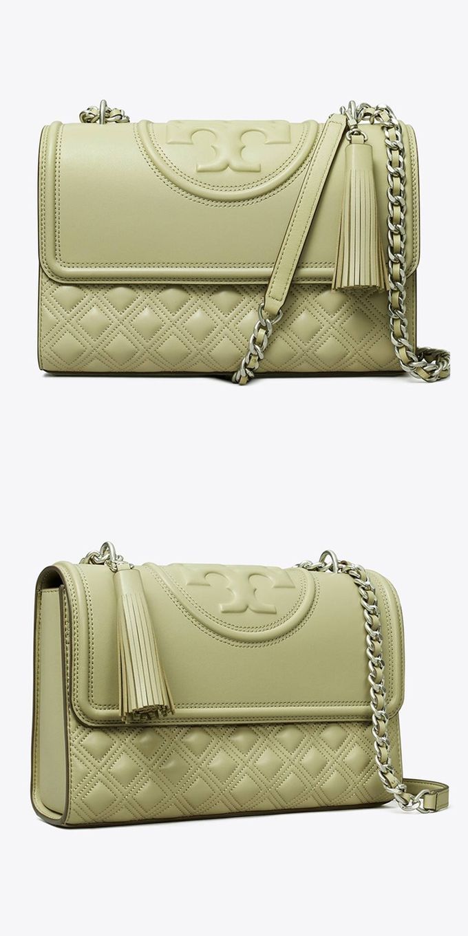 菱格絎縫皮革鏈帶包 (草綠)