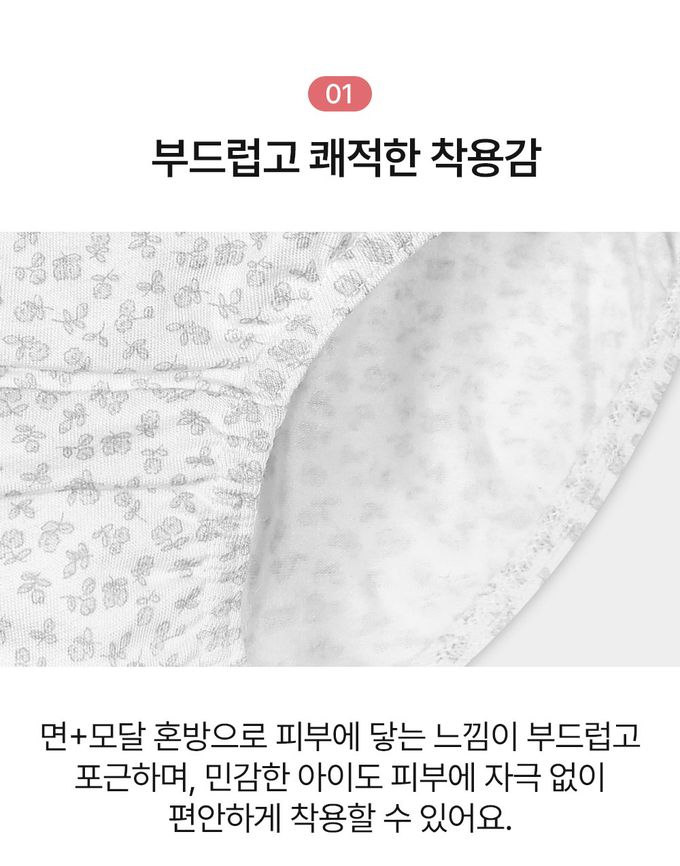 (01.) 柔軟舒適的穿著感受,棉+莫代爾混紡材質,觸感細膩又溫潤,即使是敏感肌的孩子也能安心穿著,毫無刺激。