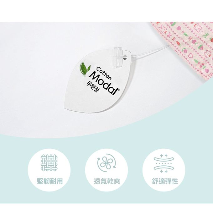 (01.) 柔軟舒適的穿著感受,棉+莫代爾混紡材質,觸感細膩又溫潤,即使是敏感肌的孩子也能安心穿著,毫無刺激。