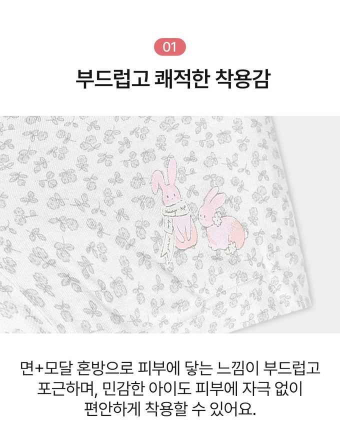 (01.) 柔軟舒適的穿著感受,棉+莫代爾混紡材質,觸感細膩又溫潤,即使是敏感肌的孩子也能安心穿著,毫無刺激。