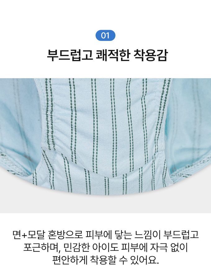 (01.)  柔軟舒適的穿著感受,棉+莫代爾混紡材質,觸感細膩又溫潤,即使是敏感肌的孩子也能安心穿著,毫無刺激。