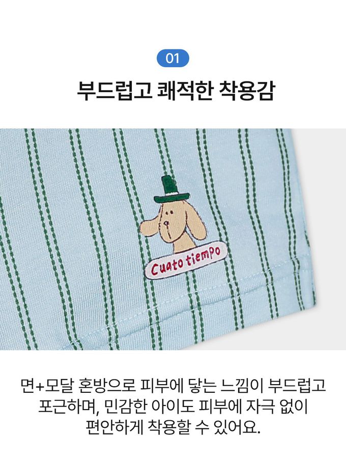 (01.)  柔軟舒適的穿著感受,棉+莫代爾混紡材質,觸感細膩又溫潤,即使是敏感肌的孩子也能安心穿著,毫無刺激。