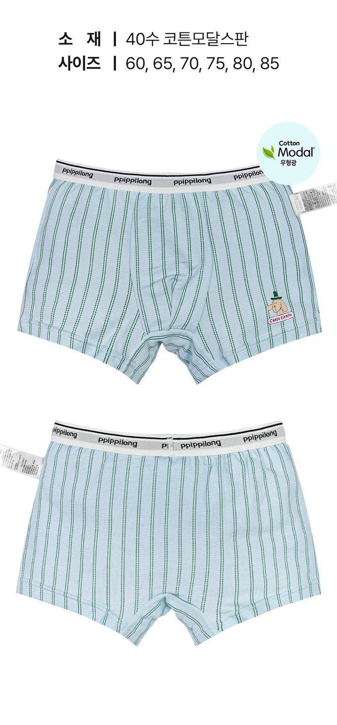 韓國 Ppippilong - 絲柔莫代爾混棉四角褲(男寶)-線紋熊熊-灰藍綠