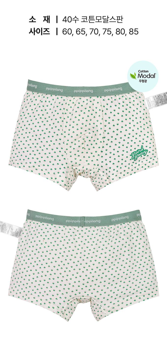 韓國 Ppippilong - 絲柔莫代爾混棉四角褲(男寶)-綠心紋-米