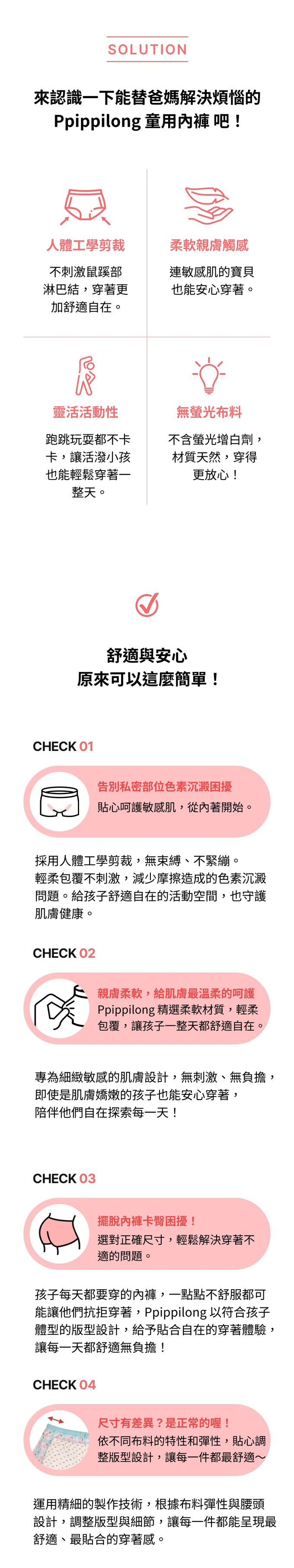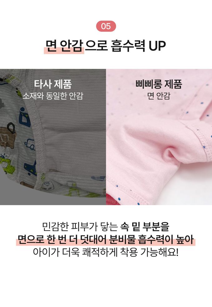 (04.)  鬆緊帶有彈性、不緊繃,以布料包覆縫製成內嵌式設計,減少對肌膚的刺激並柔軟貼合,讓孩子們穿著更舒適、滿意度更提升。