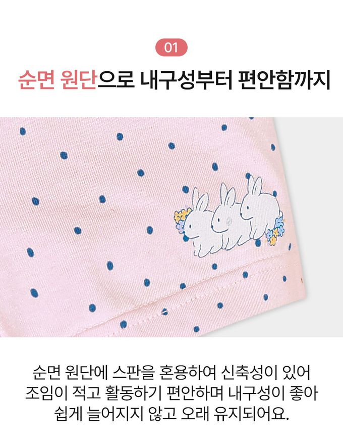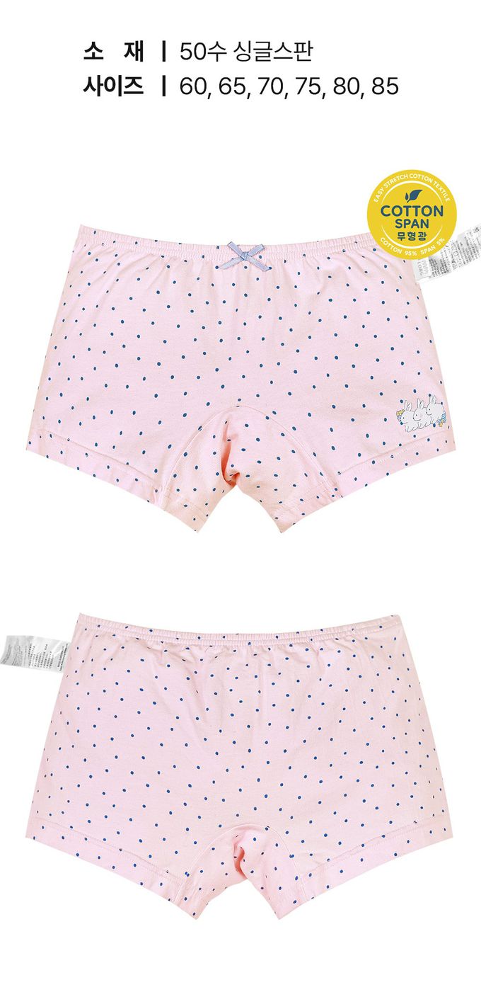 韓國 Ppippilong - 輕柔棉透氣四角褲(女寶)-點點小白兔-粉