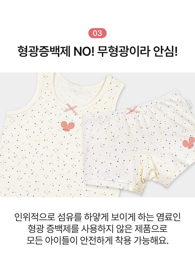 (03.) 不含螢光增白劑(一種使布料更白的化學染料)不易致敏,所有膚質的孩子都能安心好穿