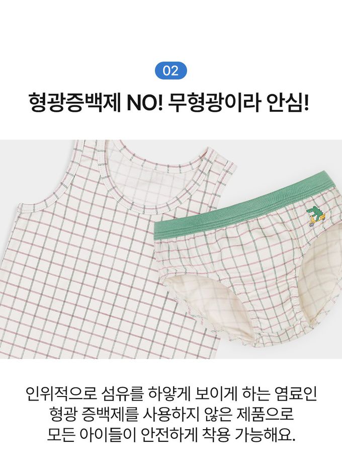 (02.)  不含螢光增白劑(一種使布料更白的化學染料)不易致敏,所有膚質的孩子都能安心好穿