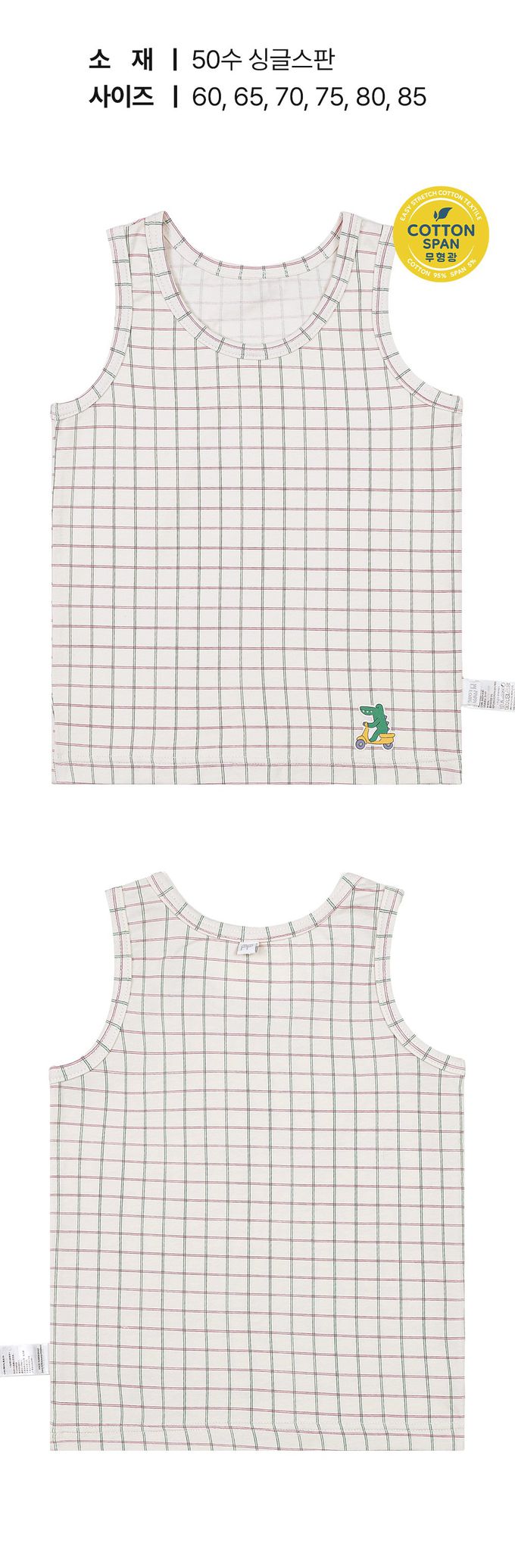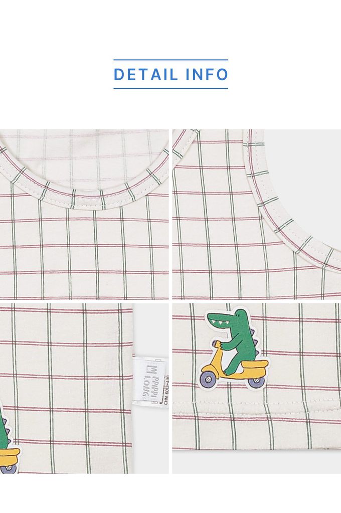 韓國 Ppippilong - 輕柔棉透氣背心內衣(男寶)-格紋鱷魚騎車-米