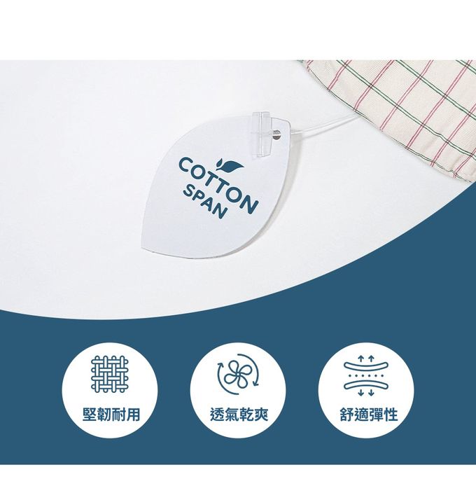 (01.) 採用純棉面料混合彈性纖維,具備良好伸縮性,不緊繃、活動自在,耐用度高,不易變形。