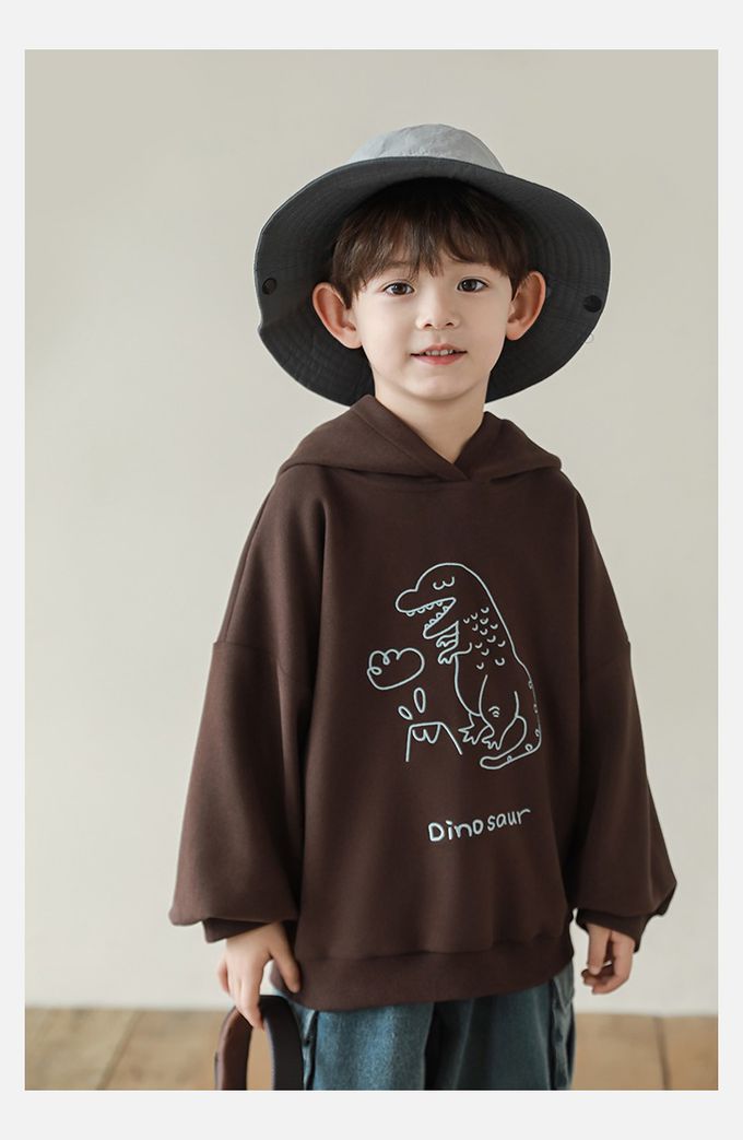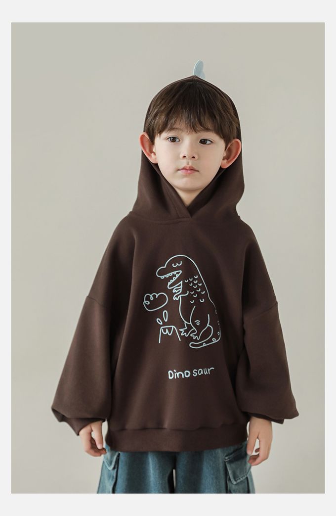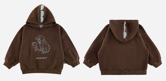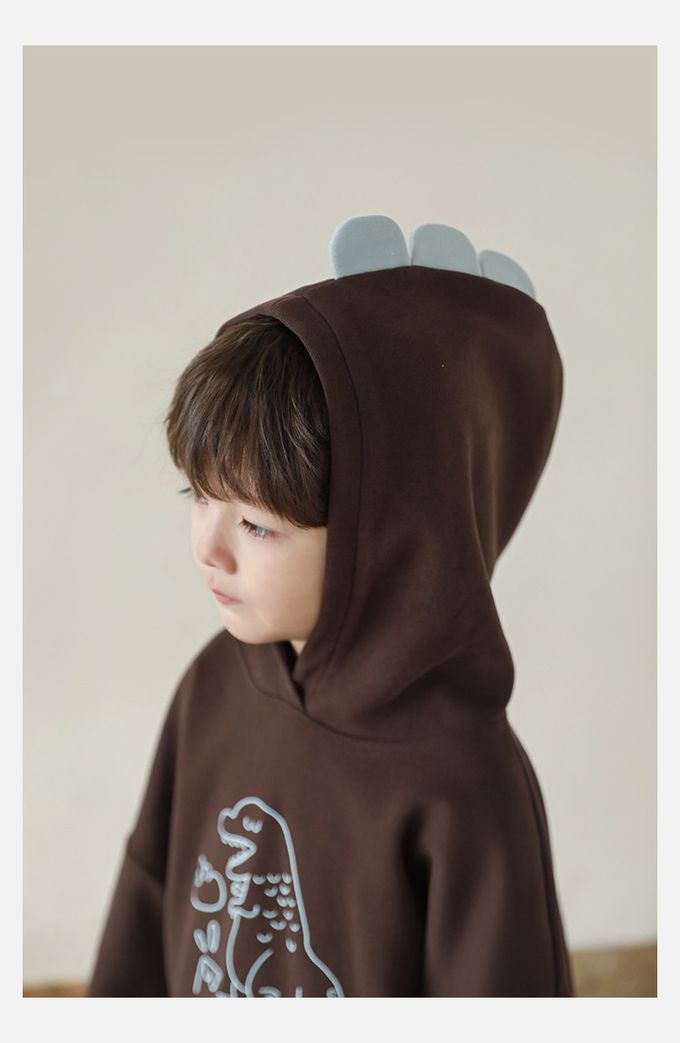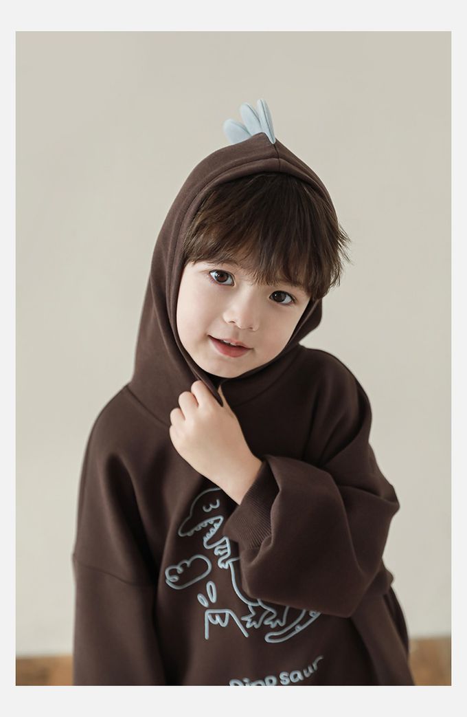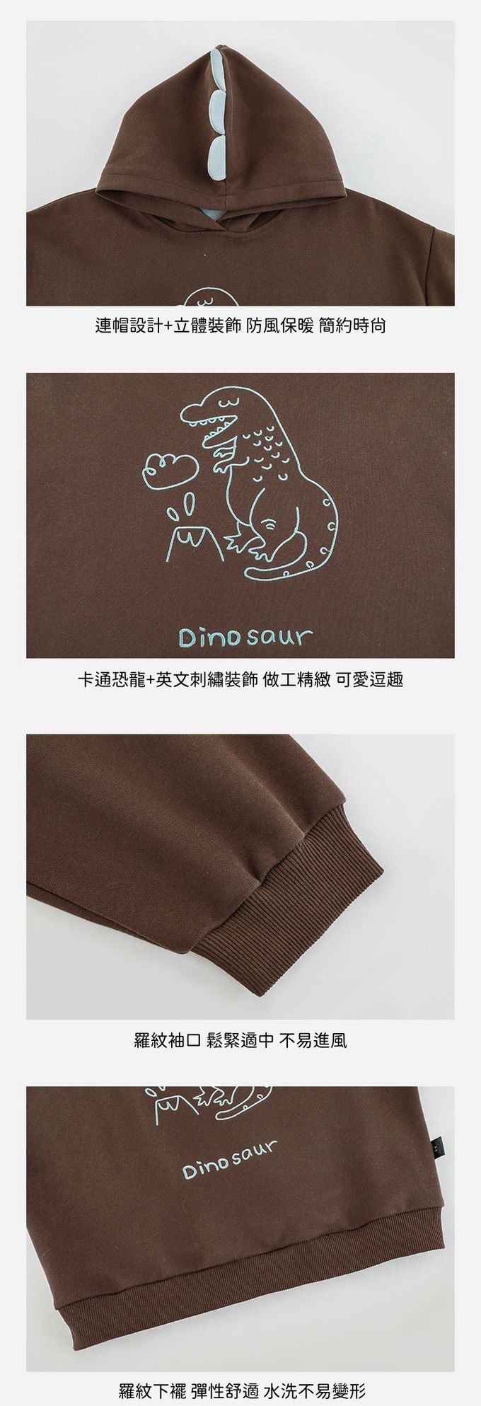 立體連帽落肩長袖上衣-恐龍-咖啡色