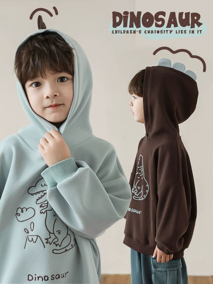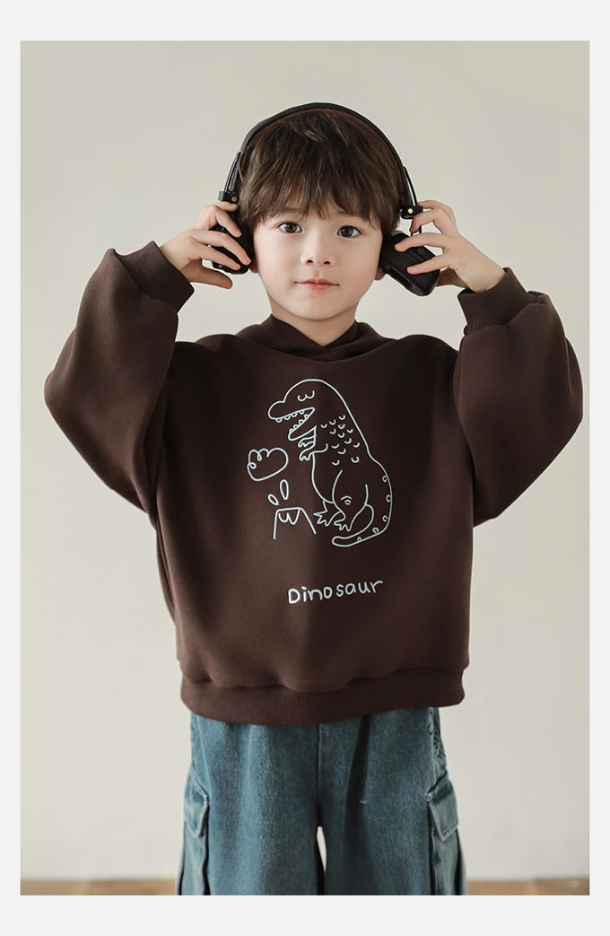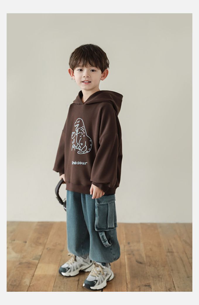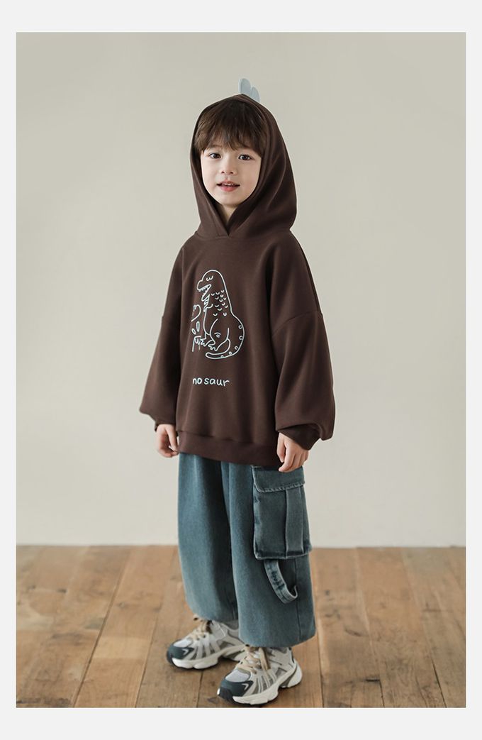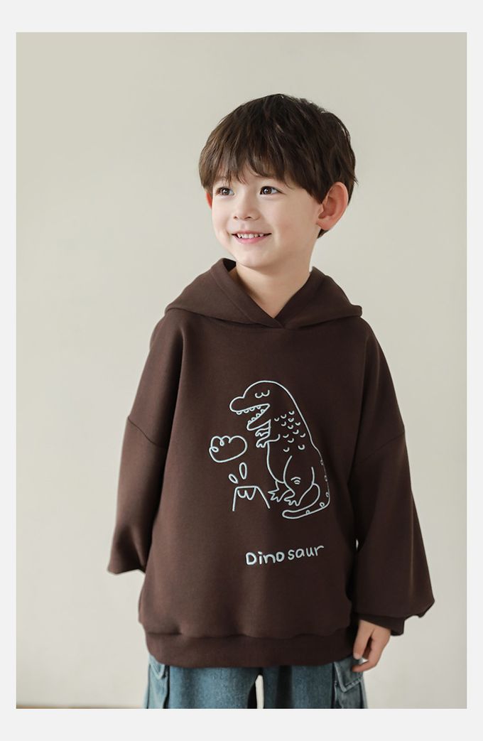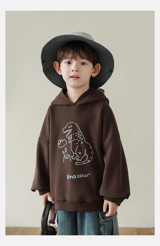 立體連帽落肩長袖上衣-恐龍-咖啡色
