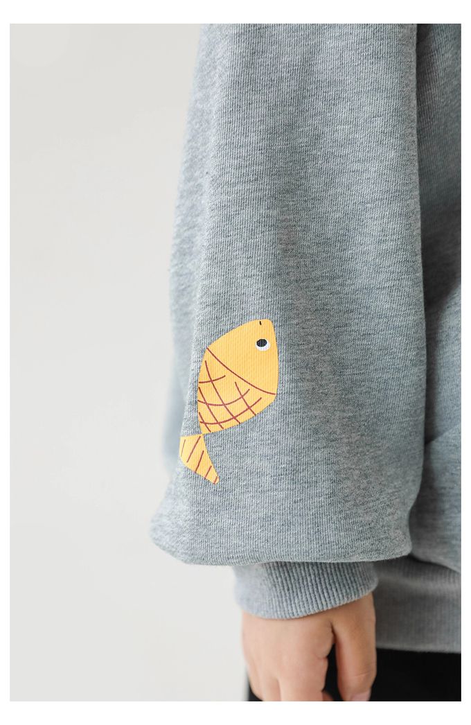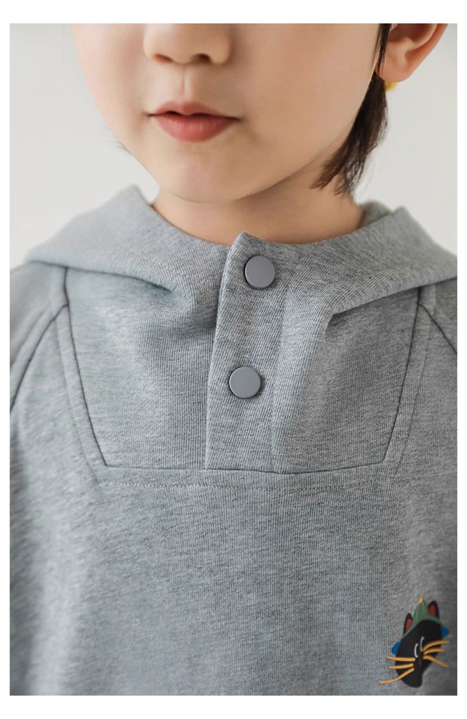 領口開扣連帽長袖上衣-動物印花-灰色