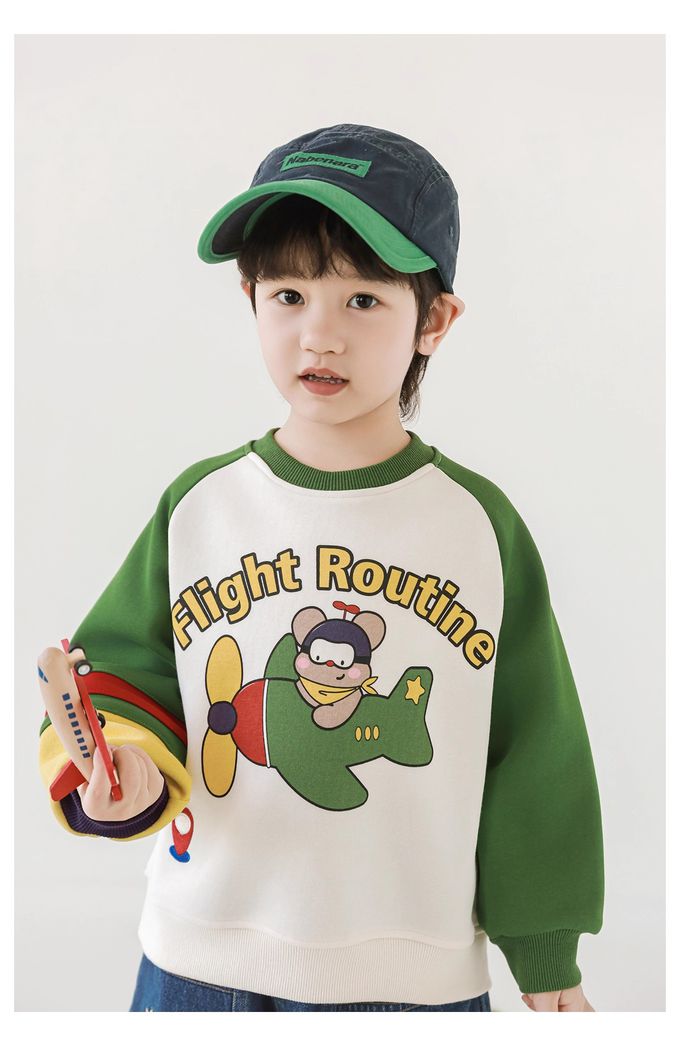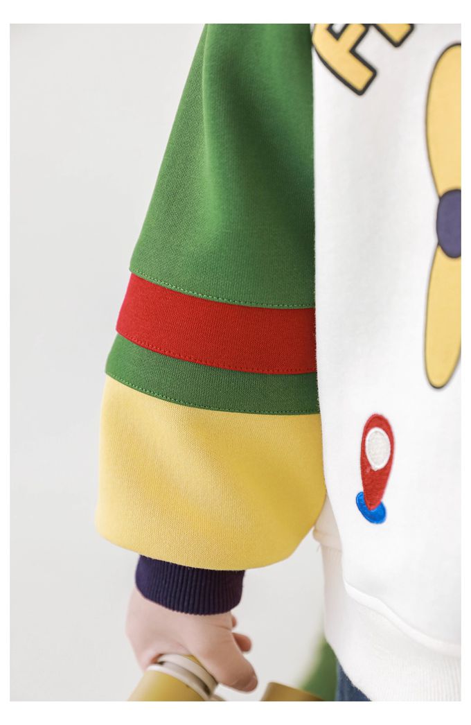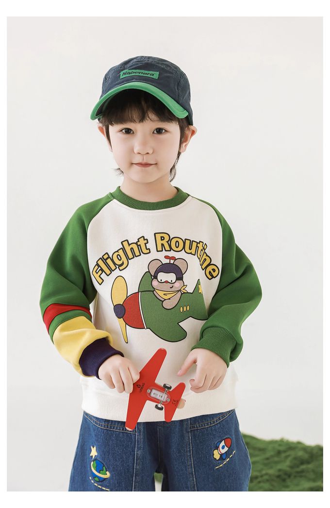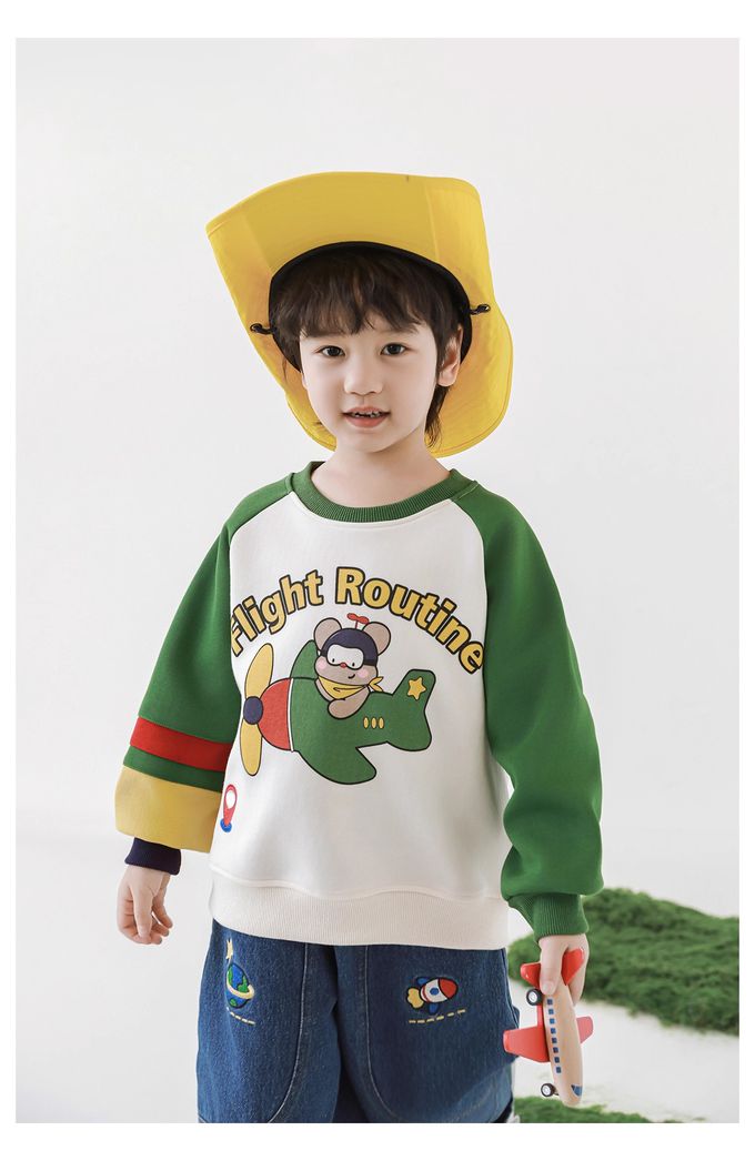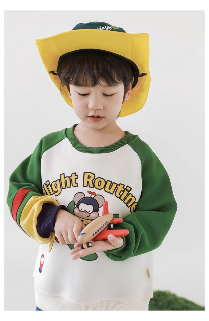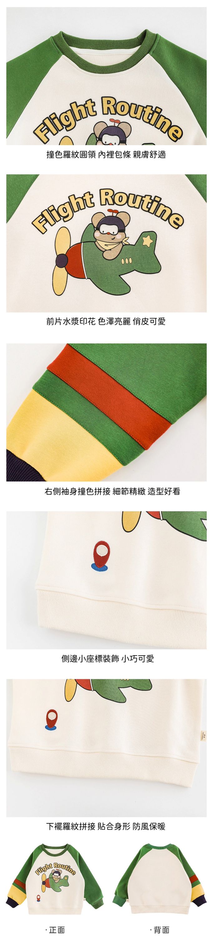 撞色拼袖大學T/長袖上衣-飛行員-米色