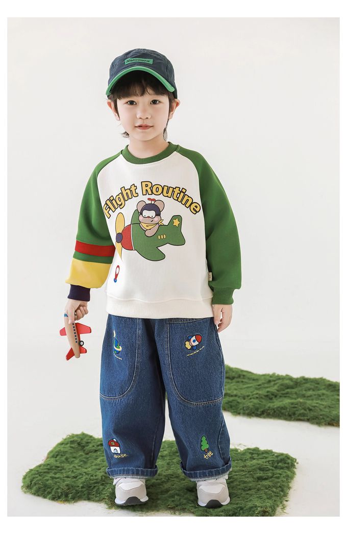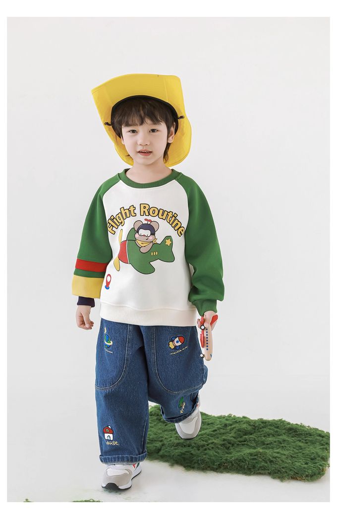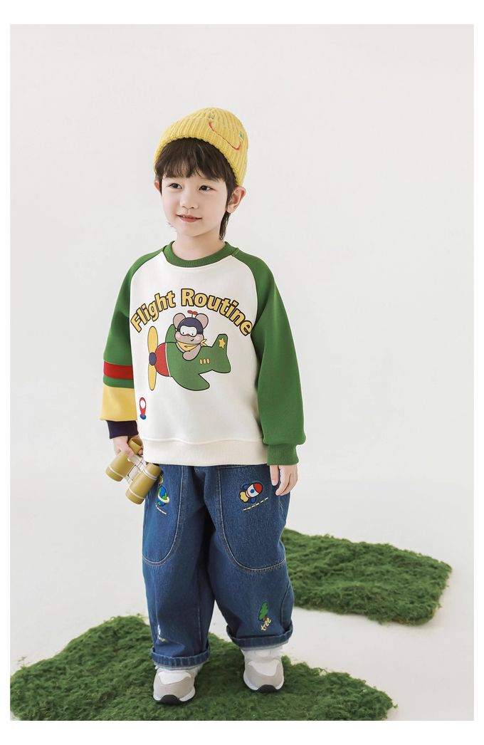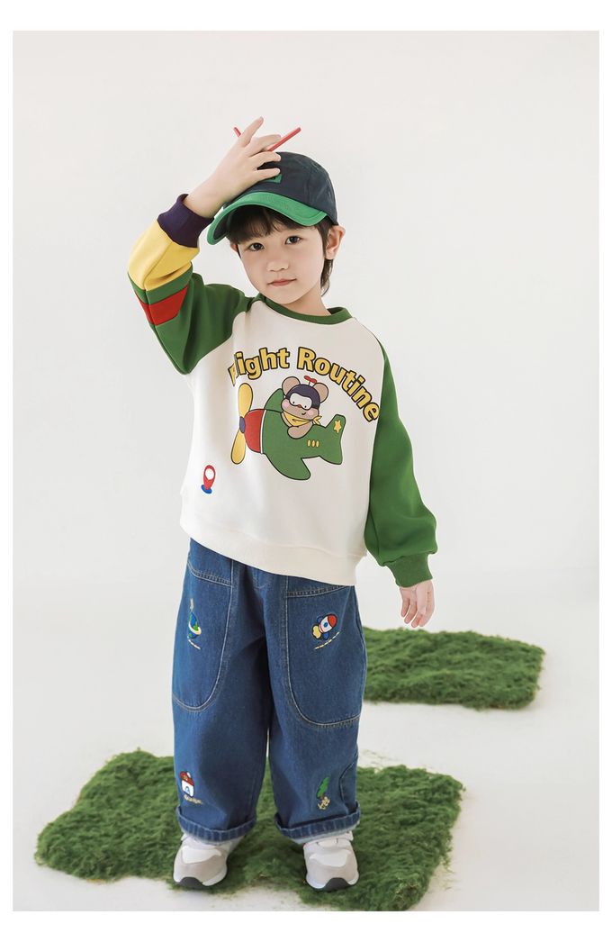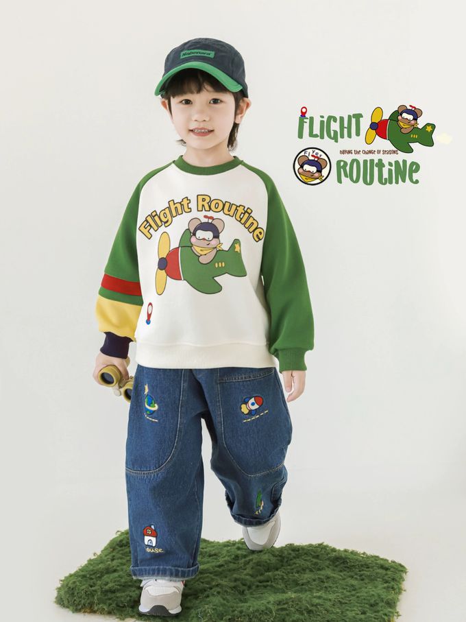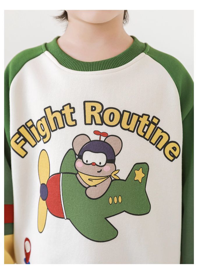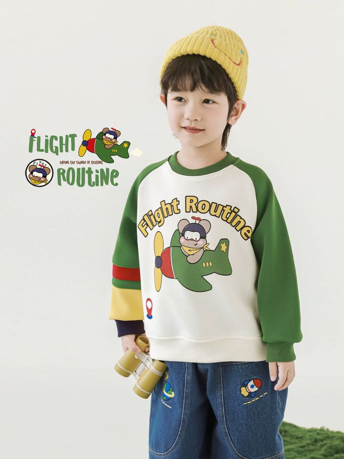撞色拼袖大學T/長袖上衣-飛行員-米色