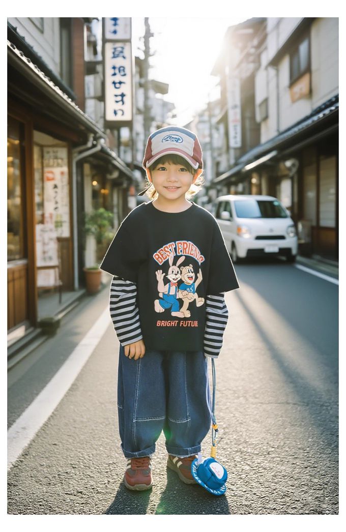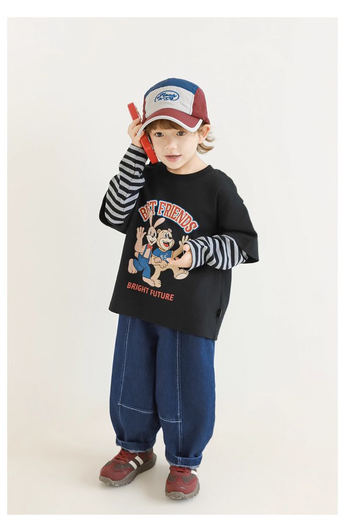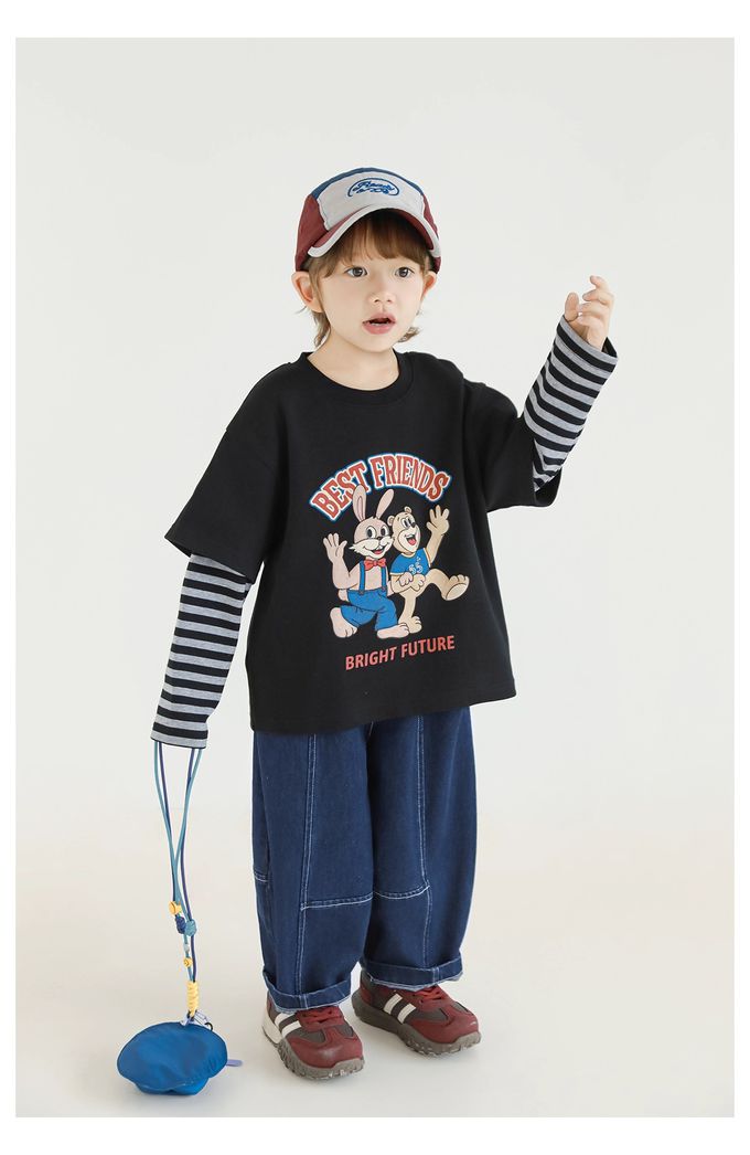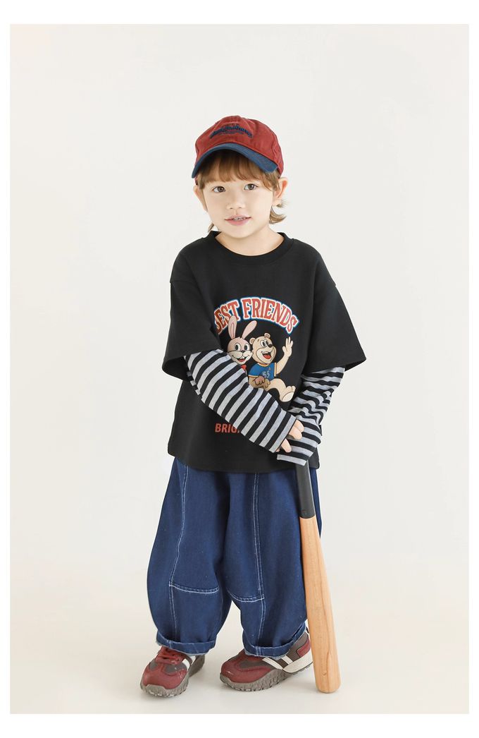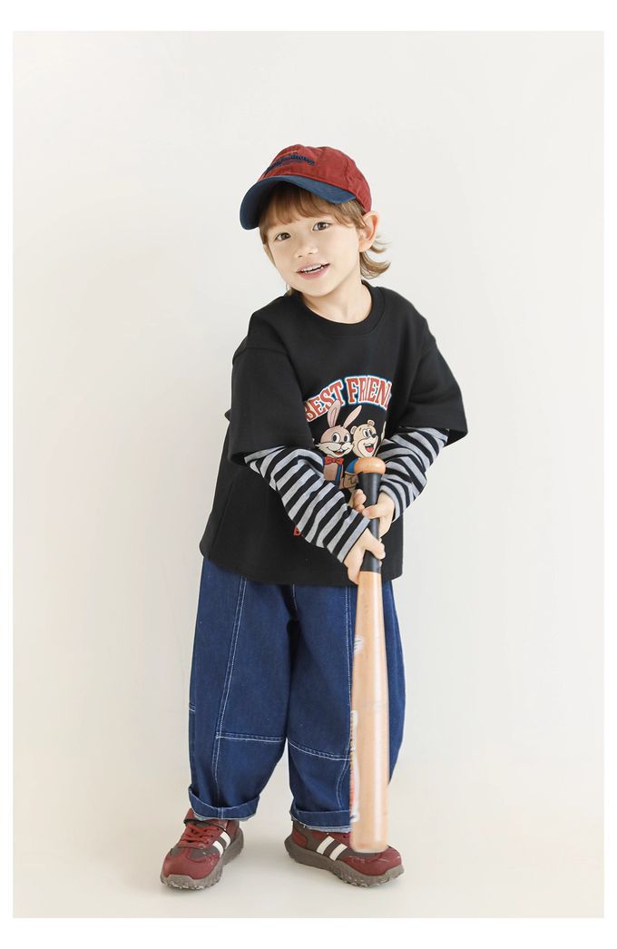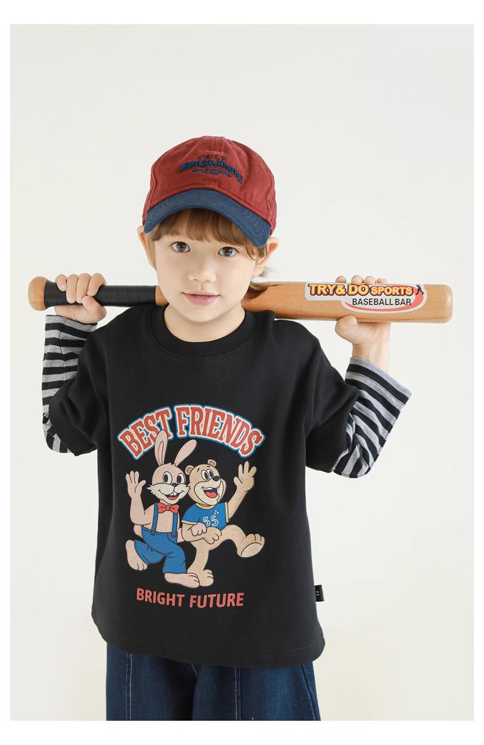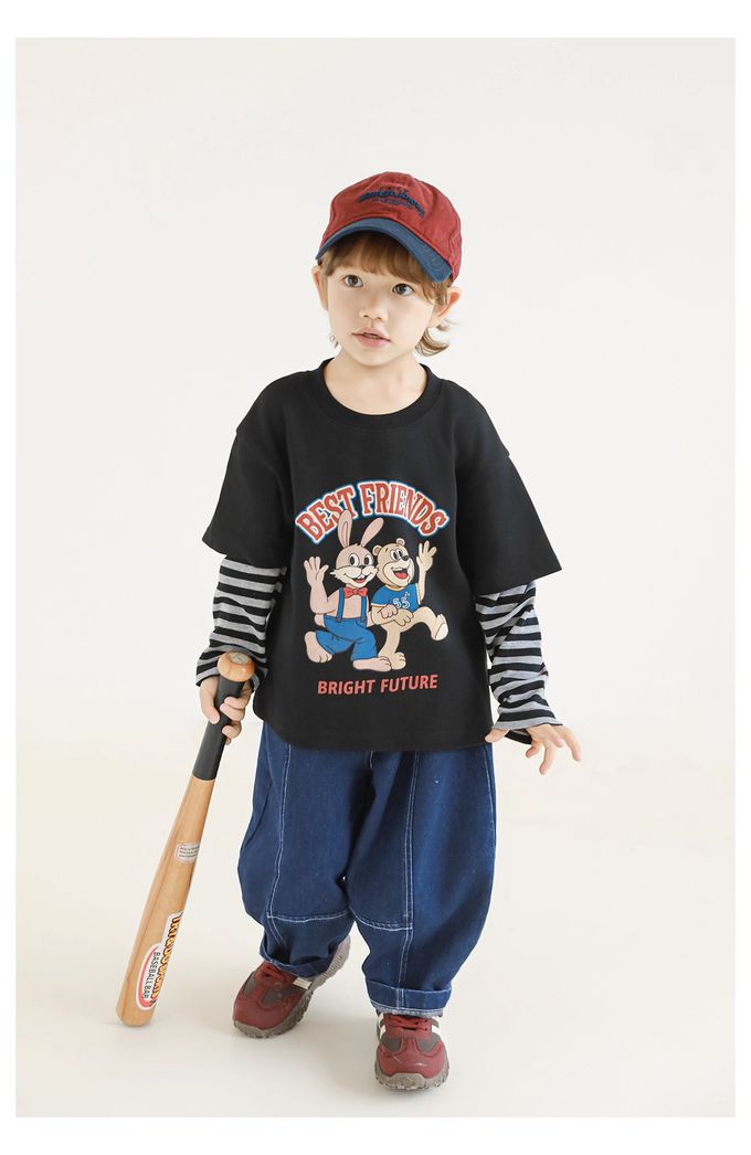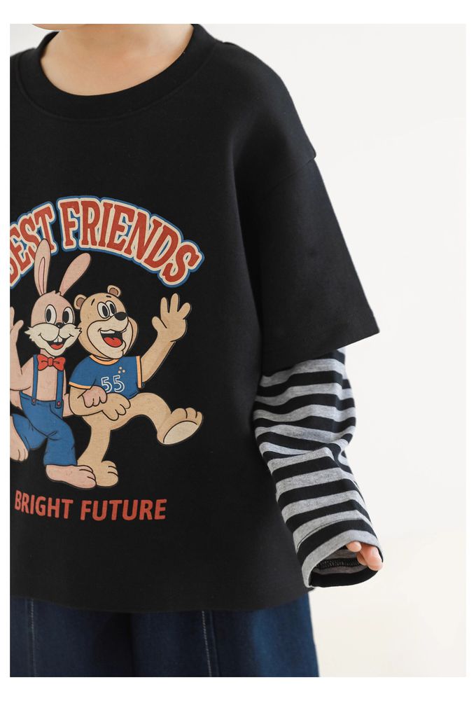 圓領假兩件長袖上衣-最好的朋友-黑色