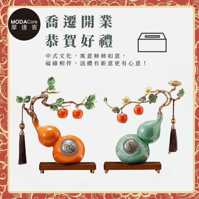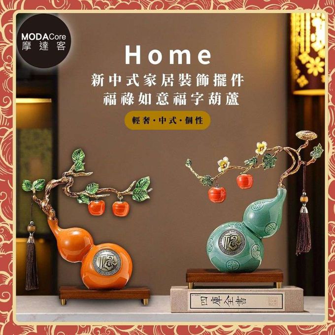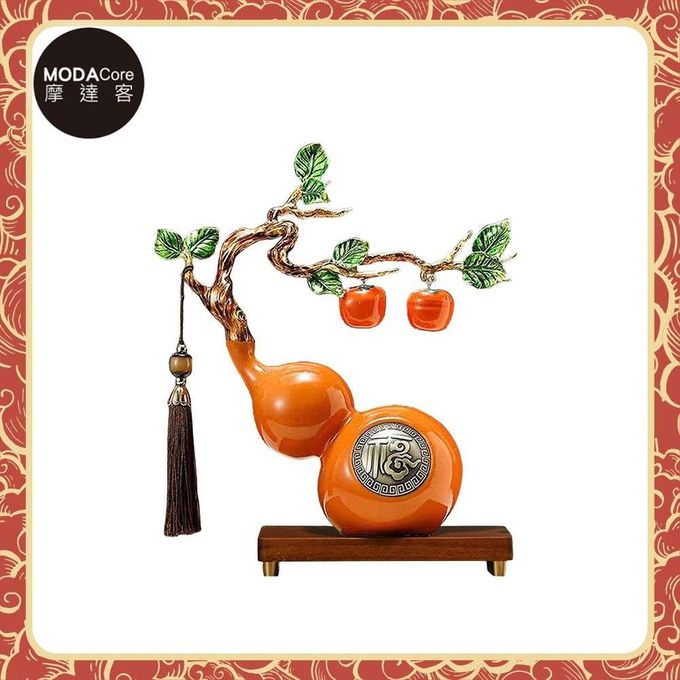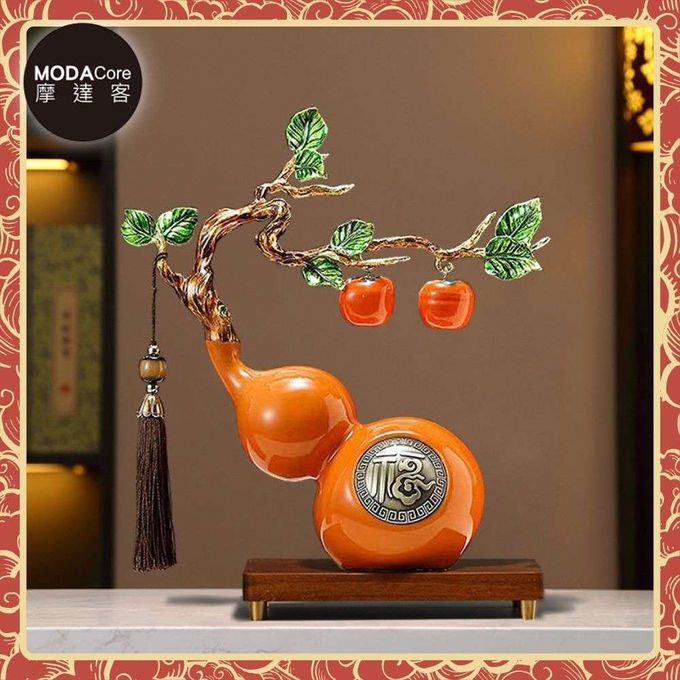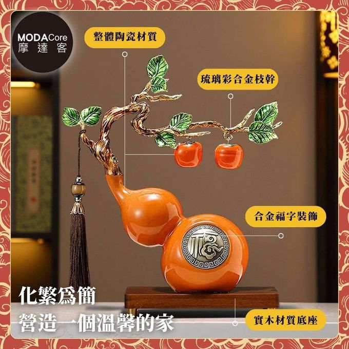 ◉開運招財◉精緻創意藝術橙色事事如意福祿葫蘆聚財設計陶瓷風水擺飾 辦公室事業 客廳玄關 春節禮品工藝