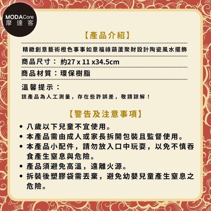 品名:◉開運招財◉精緻創意藝術橙色事事如意福祿葫蘆聚財設計陶瓷風水擺飾 辦公室事業 客廳玄關 春節禮品工藝