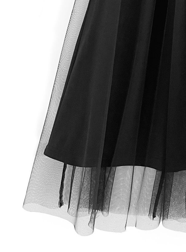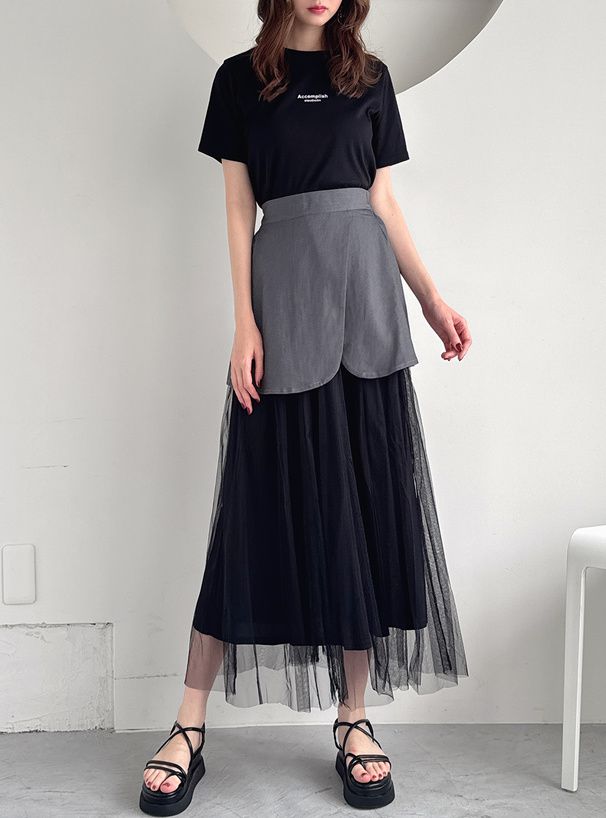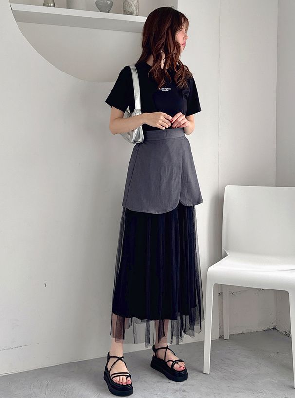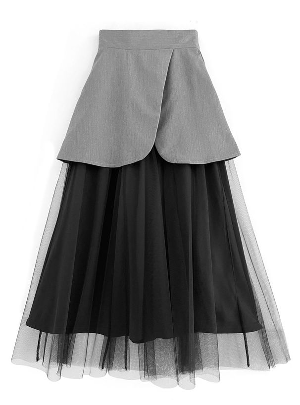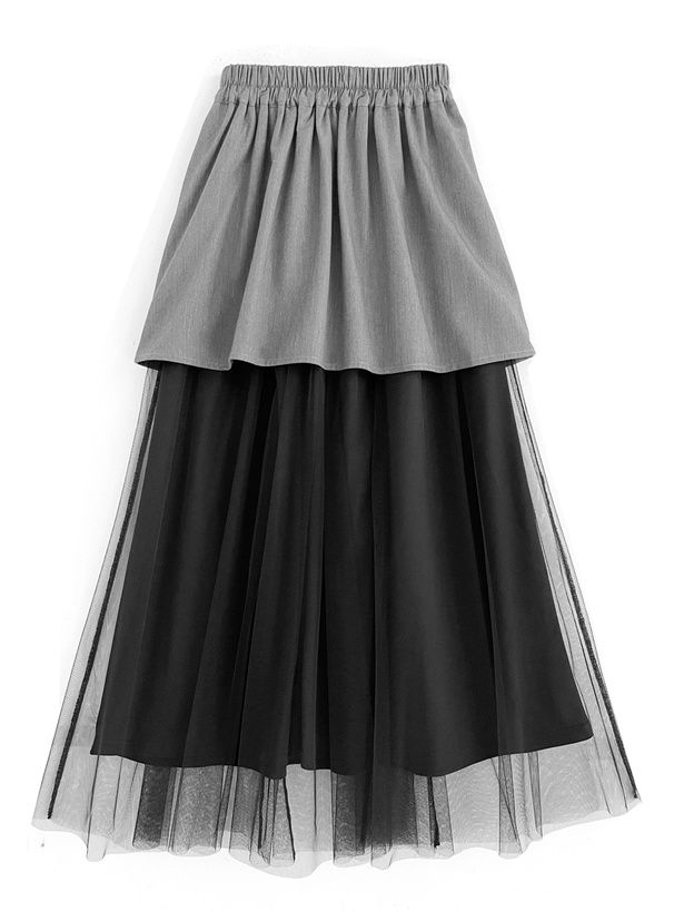 日本 GRL - 工裝風拼接層次感飄逸紗裙-黑