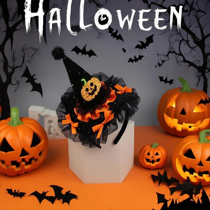 萬聖節小巫婆帽南瓜髮箍+2款可愛小抓夾