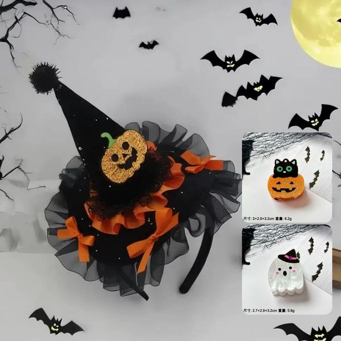 Love, Charlotte - 萬聖節小巫婆帽南瓜髮箍+2款可愛小抓夾-袋裝