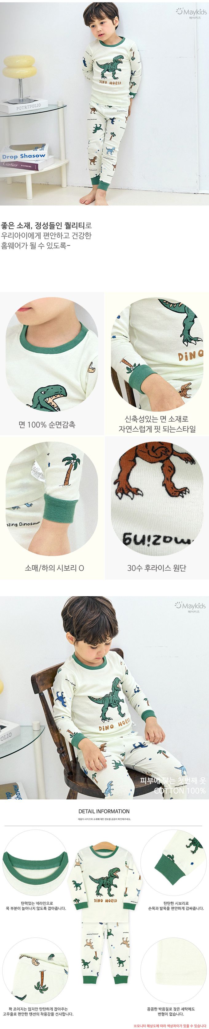 韓國 Maykids - 細緻柔棉彈性長袖家居服-暴龍世界-米