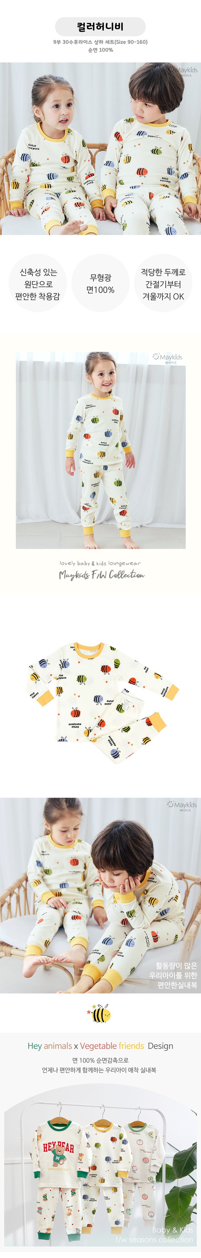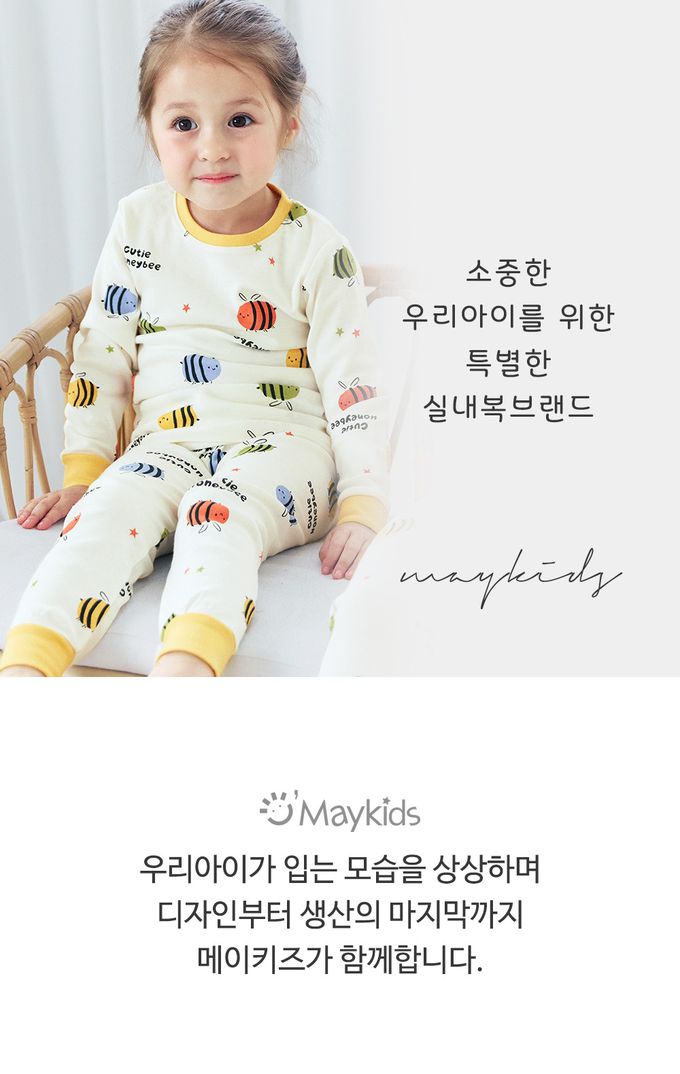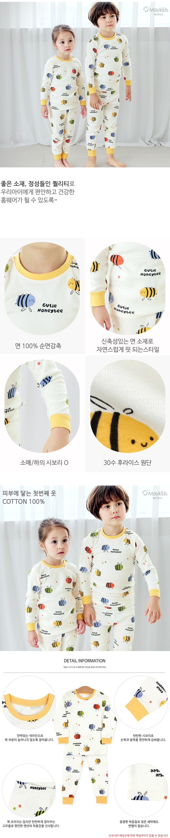 韓國 Maykids - 細緻柔棉彈性長袖家居服-彩色小蜜蜂-米黃