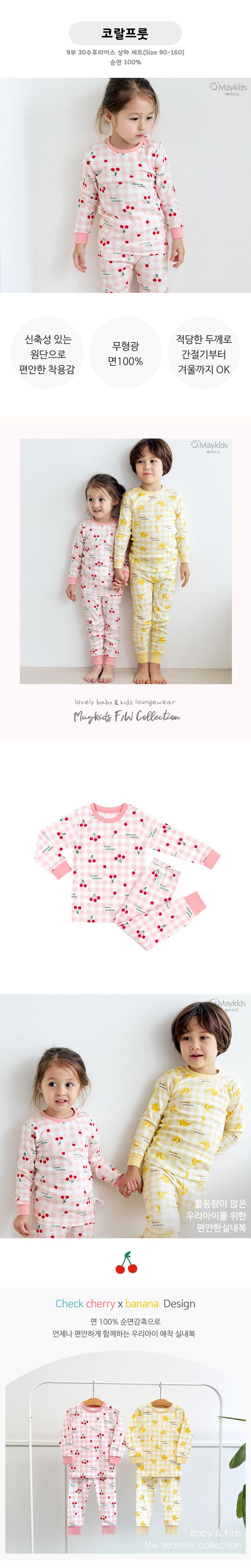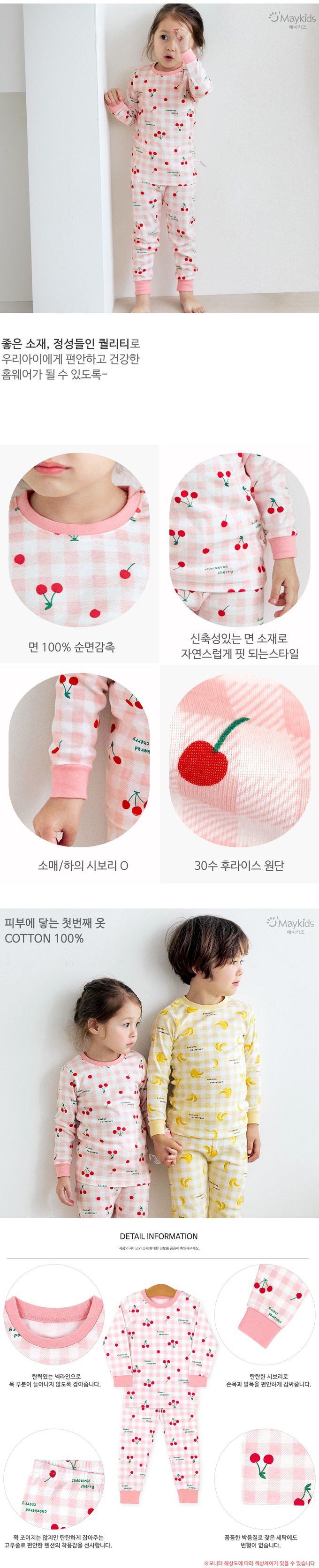 韓國 Maykids - 細緻柔棉彈性長袖家居服-格紋櫻桃-粉