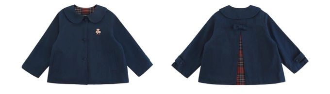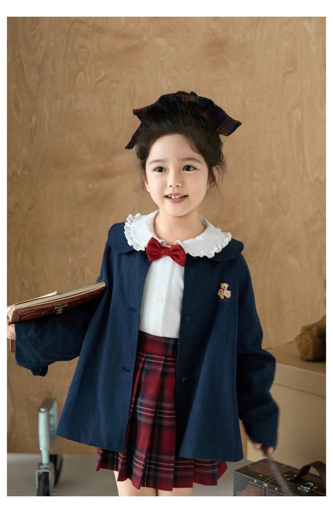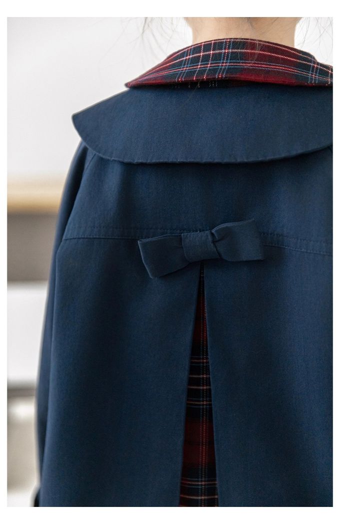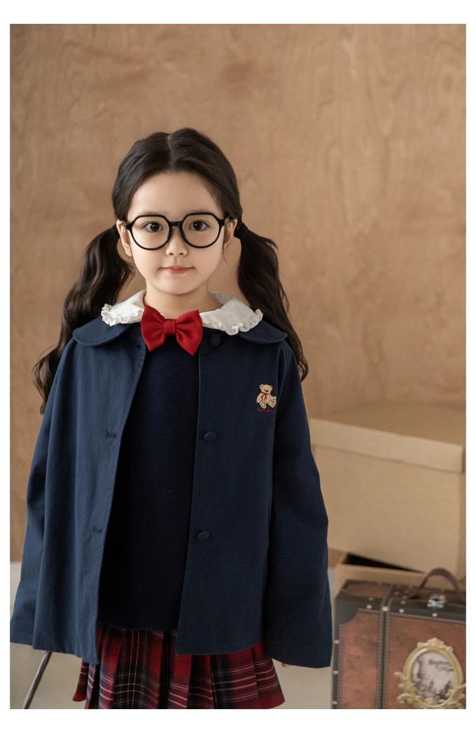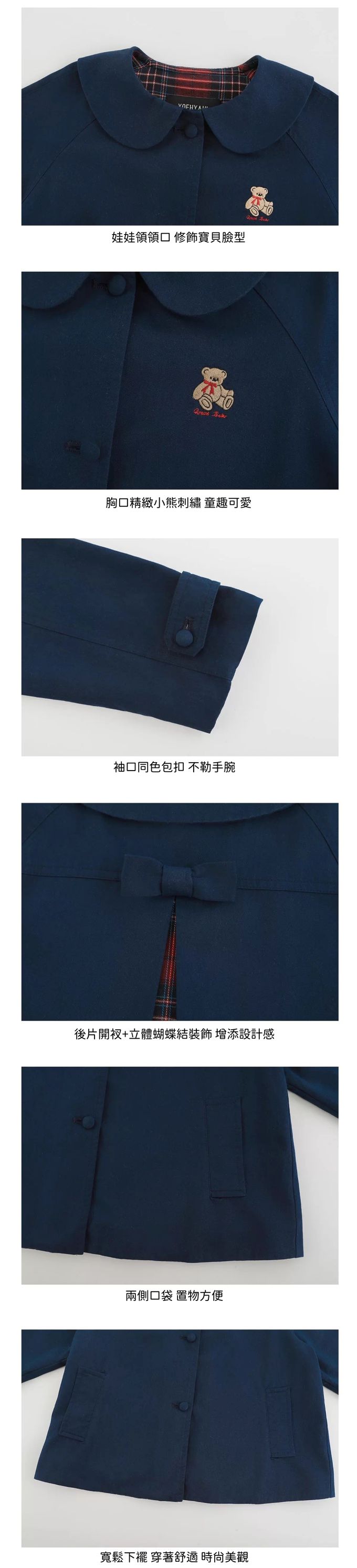 學院風甜美娃娃領風衣外套-小熊-藏青