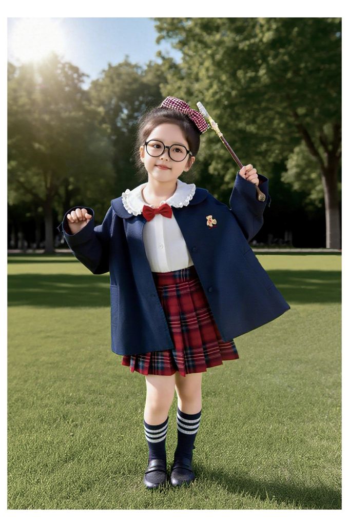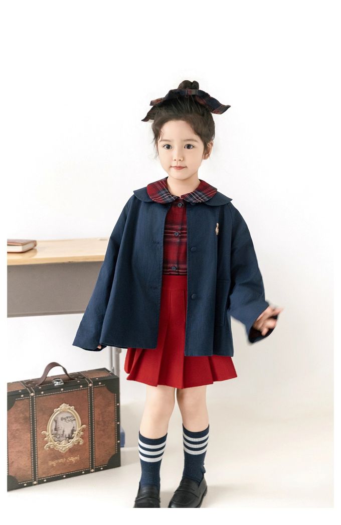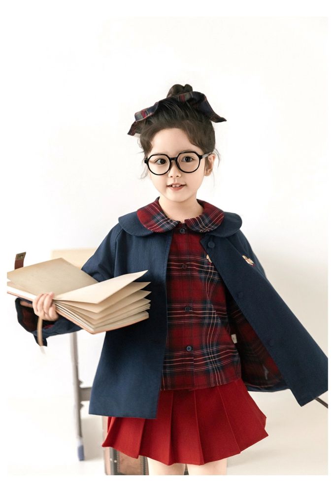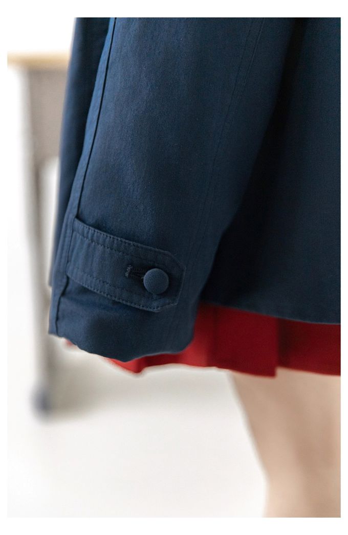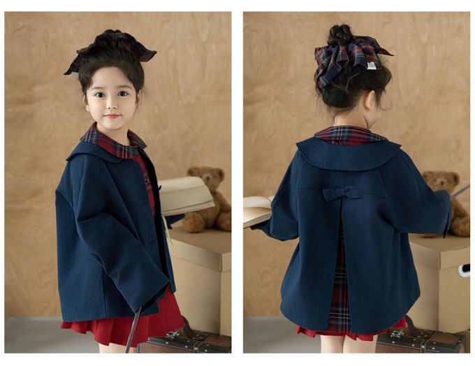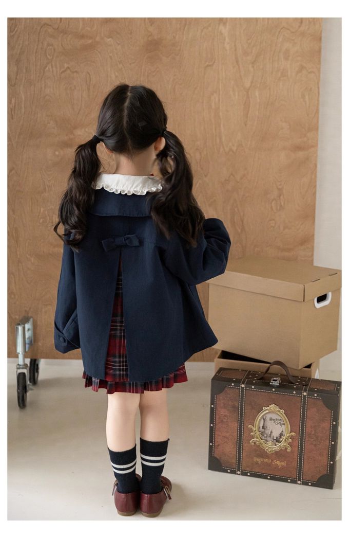 學院風甜美娃娃領風衣外套-小熊-藏青
