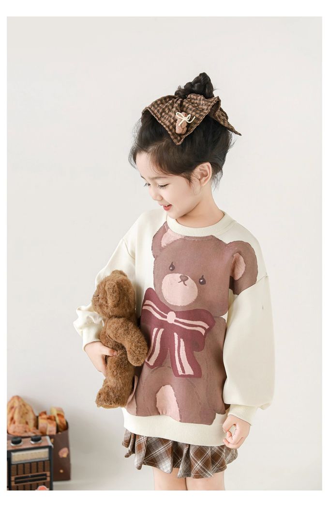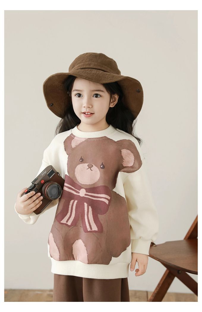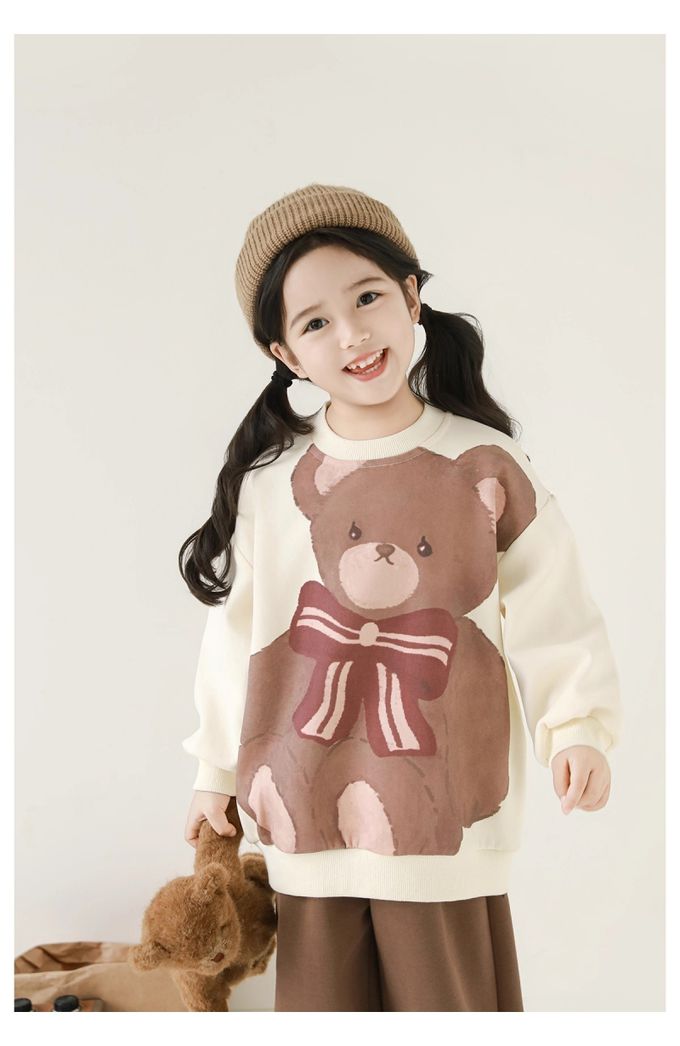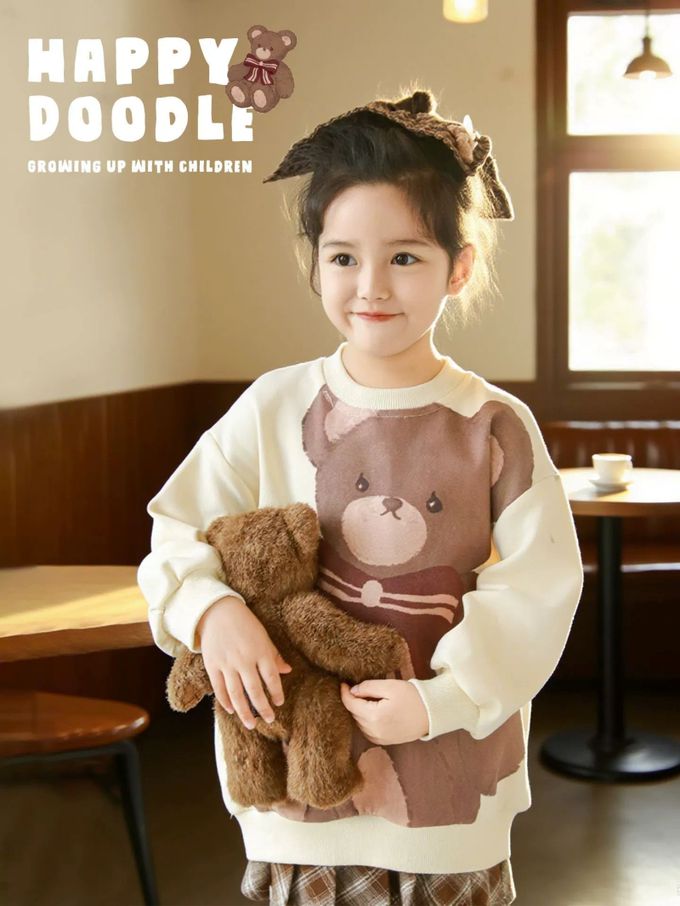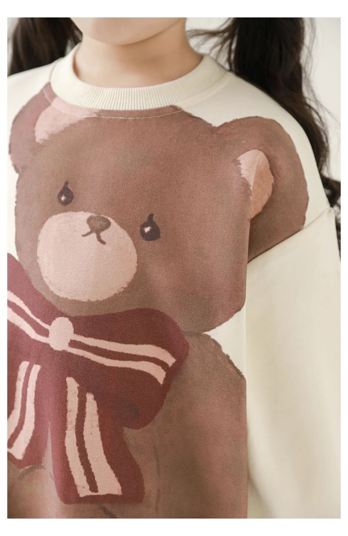 圓領休閒長版上衣/大學T-超大熊熊-米色