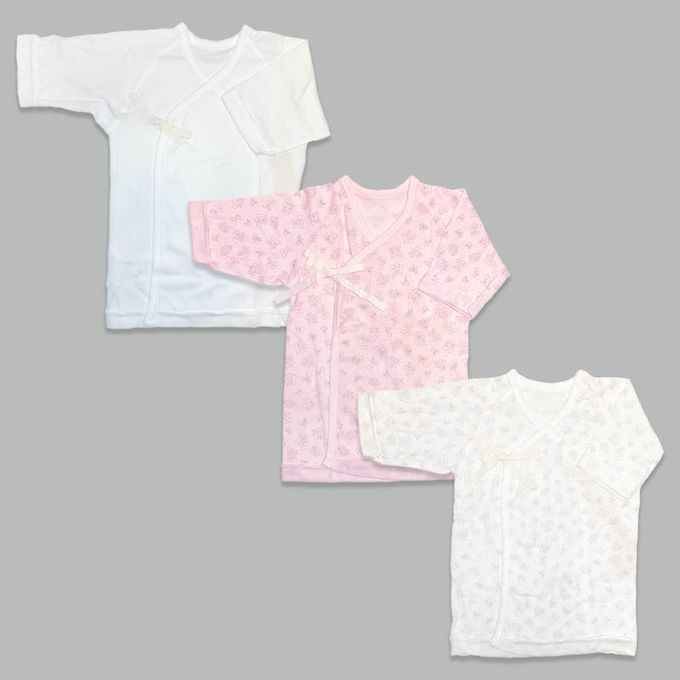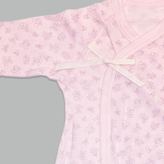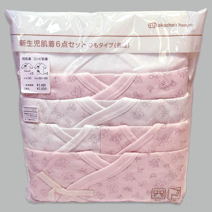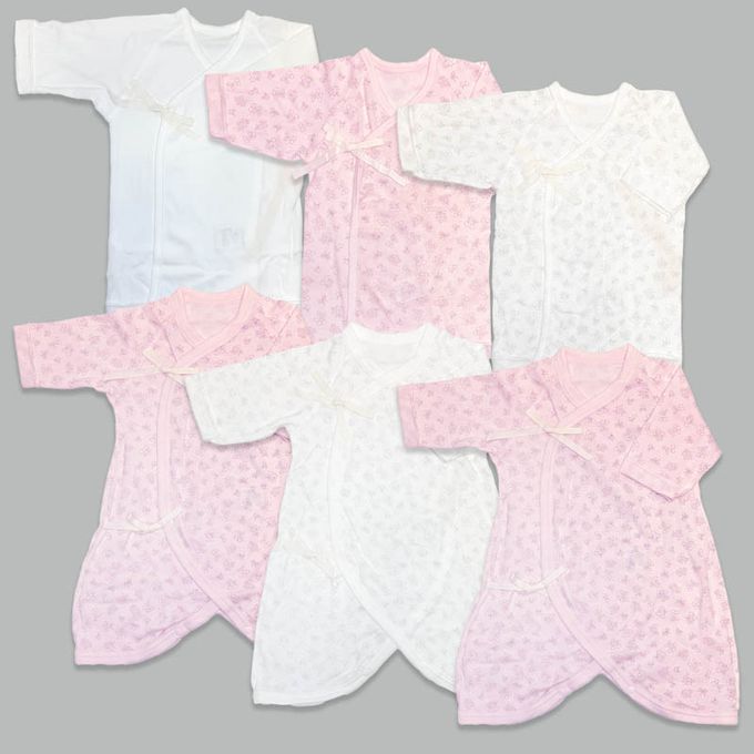 akachan honpo - 長袖新生兒內衣6件組--綁帶款 小花-粉紅色 (50~60cm)