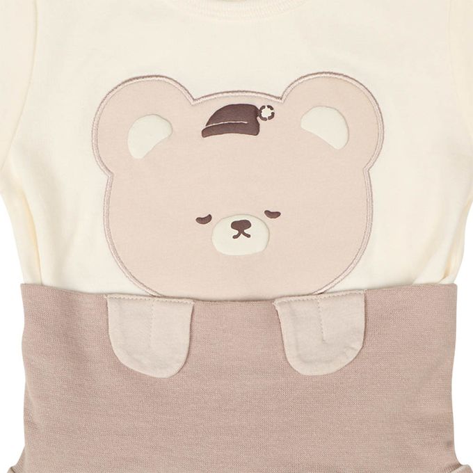 上衣上的小臉與肚圍上的小手貼布結合,呈現可愛入睡造型