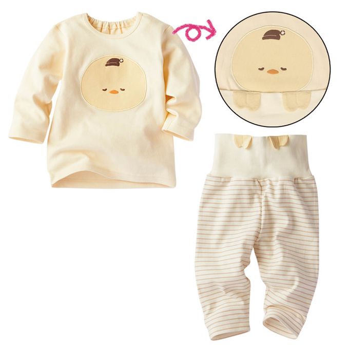 上衣上的小臉與肚圍上的小手貼布結合,呈現可愛入睡造型