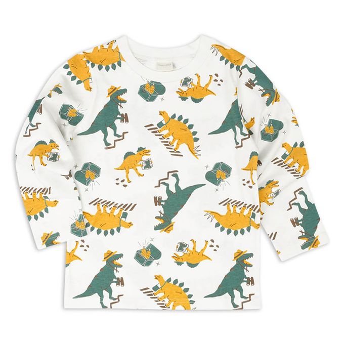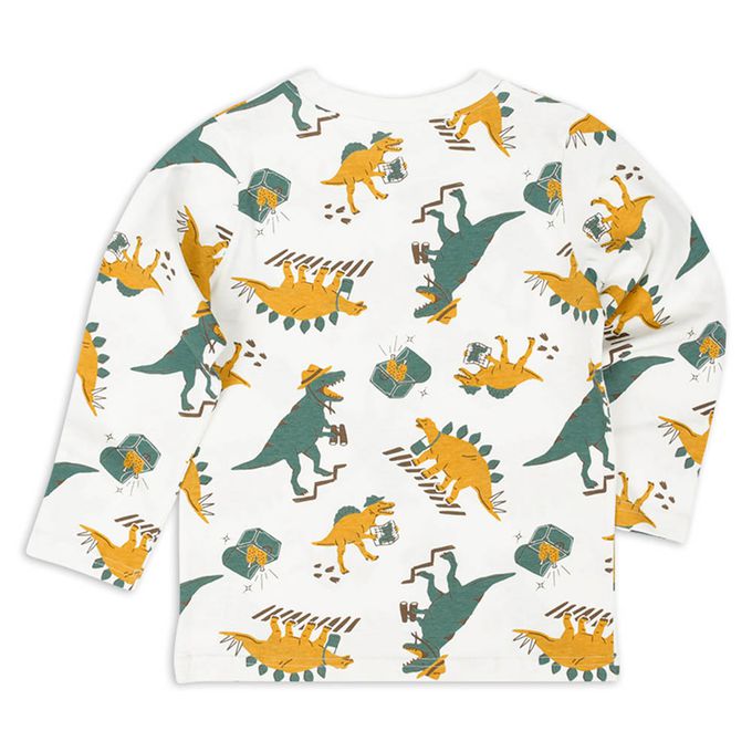akachan honpo - 長袖T恤-恐龍凸毛繡-藍色
