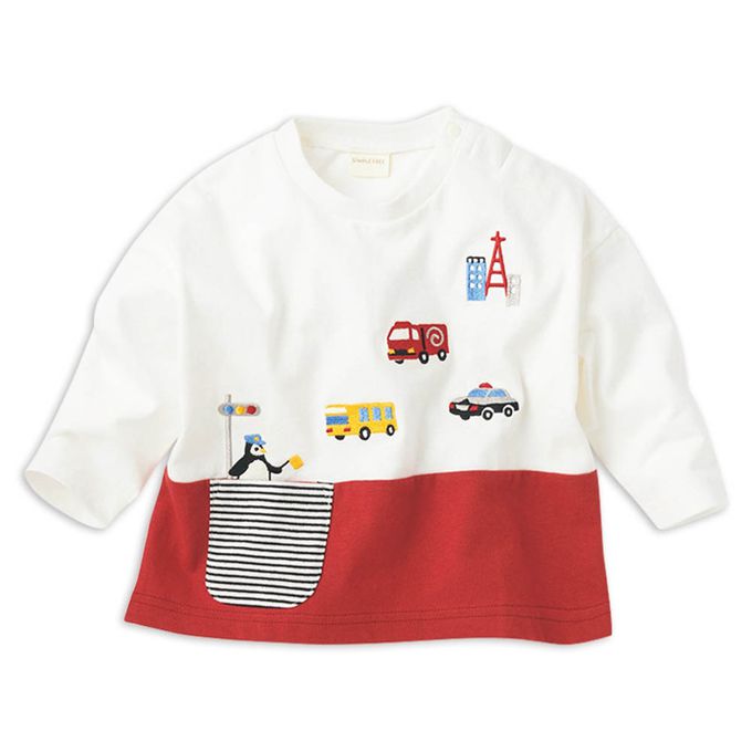 akachan honpo - 長袖T恤-凸毛繡-象牙白色