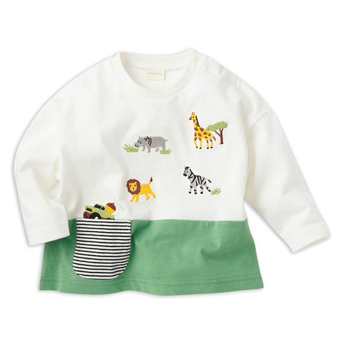 akachan honpo - 長袖T恤-動物凸毛繡-淺卡其色