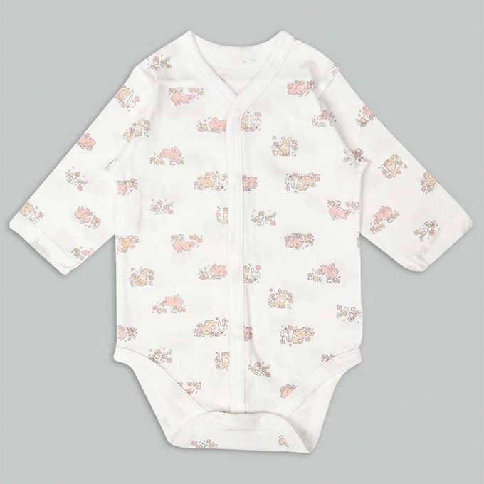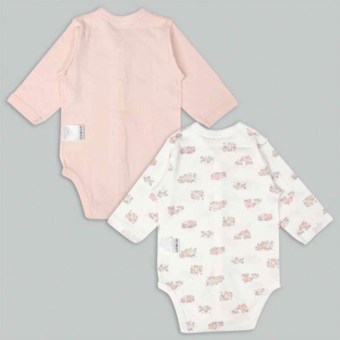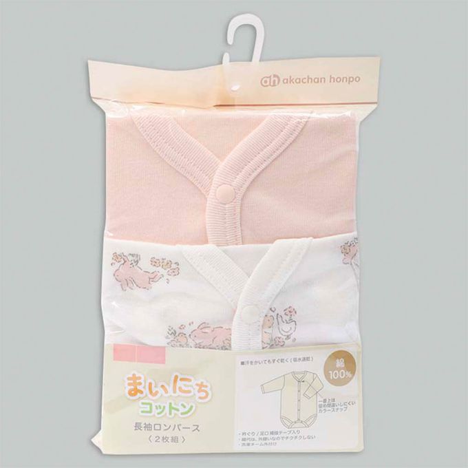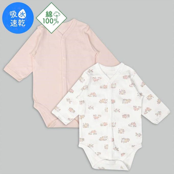 akachan honpo - 長袖包屁衣2件組-前開式 兔子-粉紅色