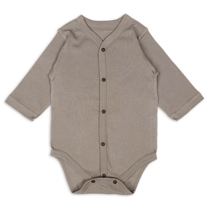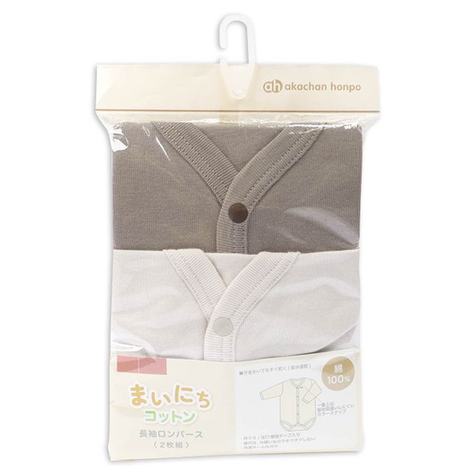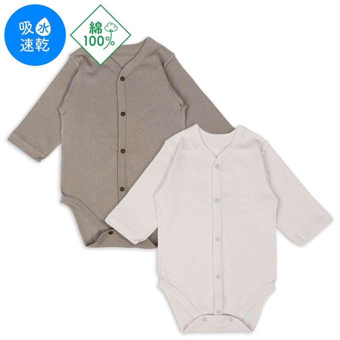 akachan honpo - 長袖包屁衣2件組-前開式 素面-咖啡色