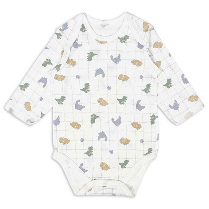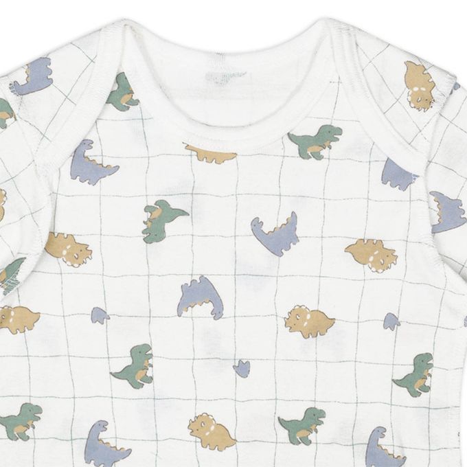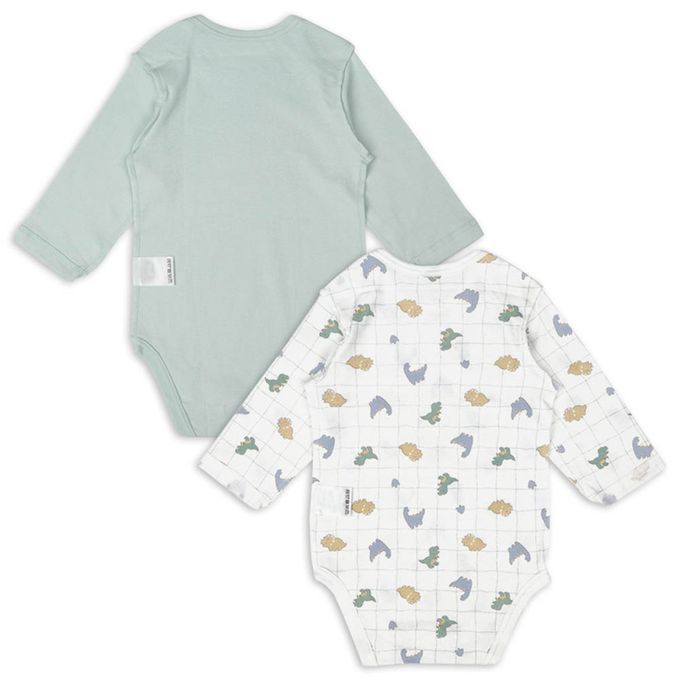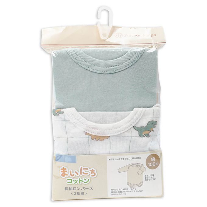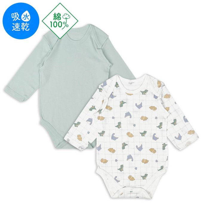 akachan honpo - 長袖包屁衣2件組-套頭式 恐龍-綠色